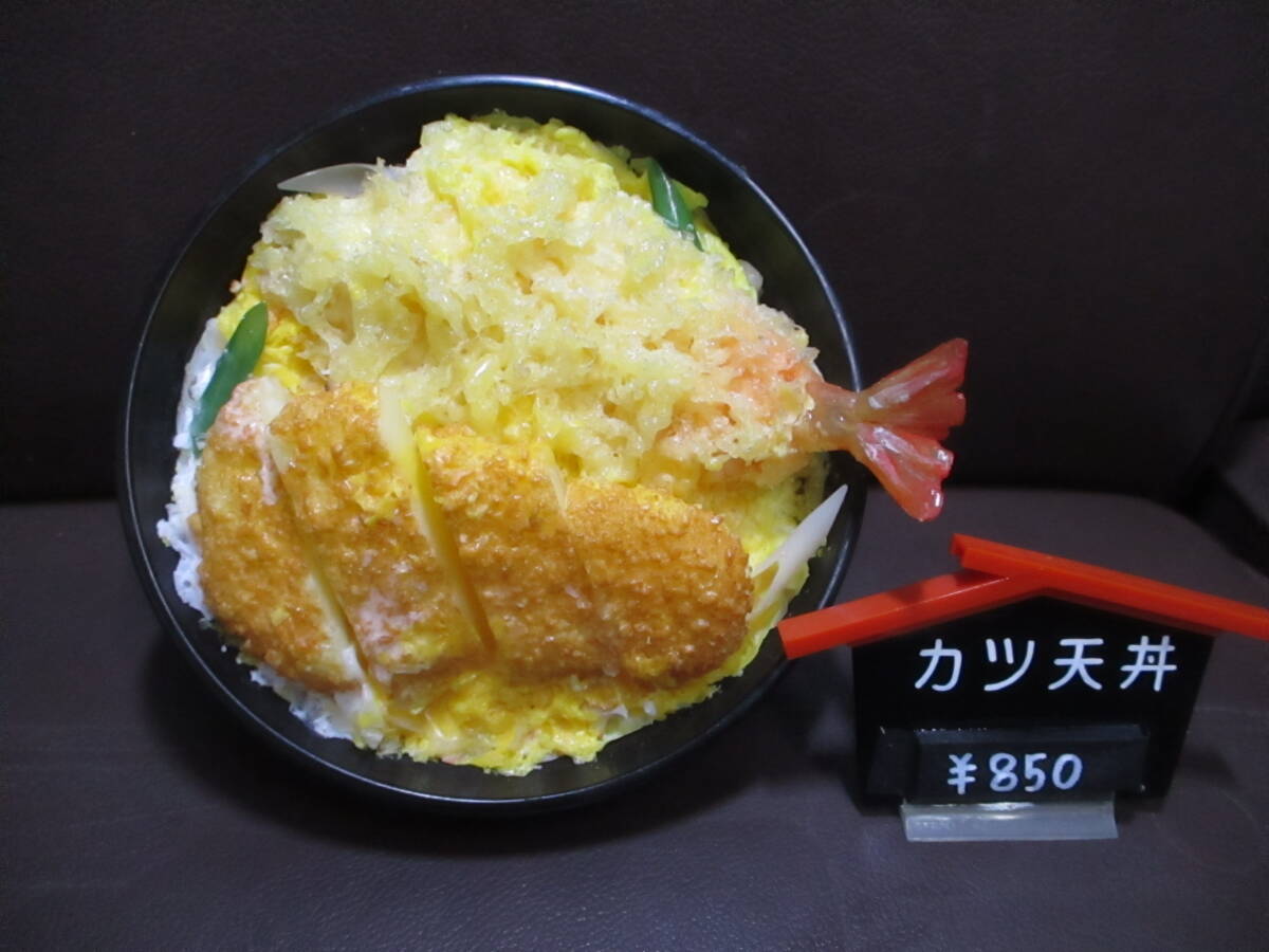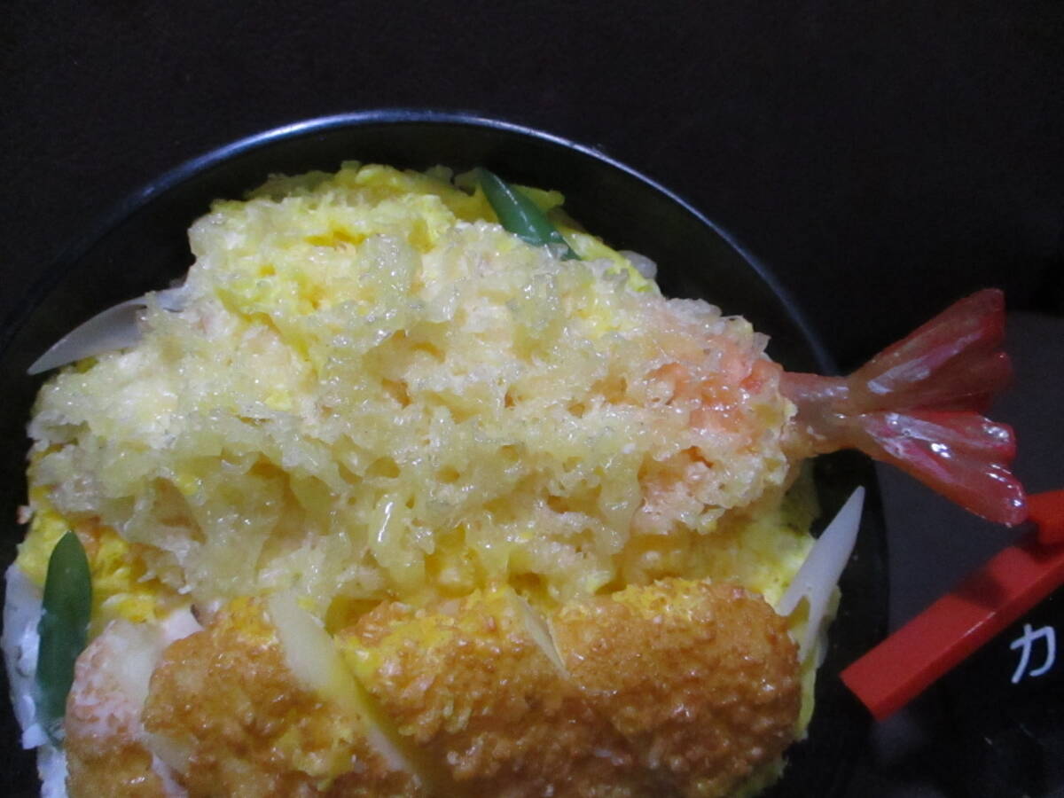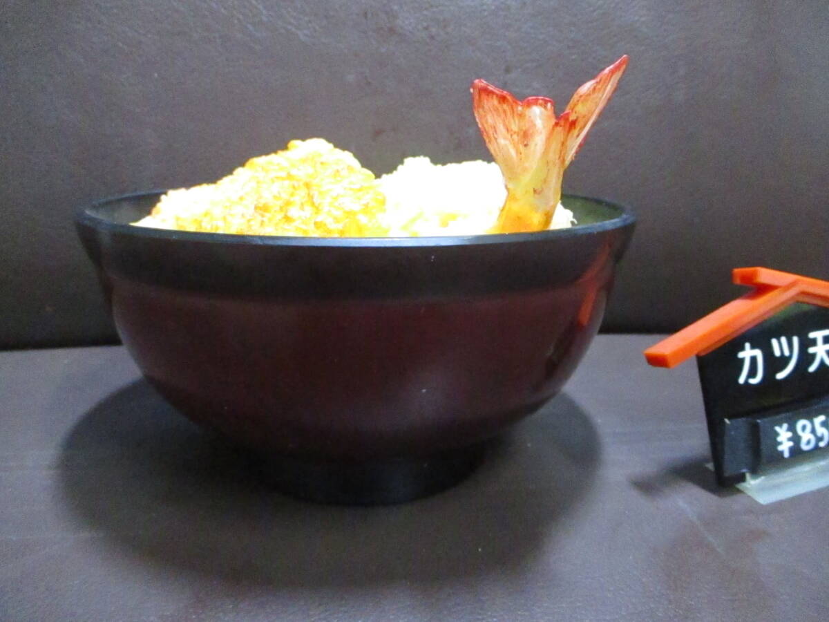まぁまぁ綺麗?食品サンプル★うどん屋さんの実物大 実寸大!かつ天丼 トンカツ 海老天 どんぶり付き★60