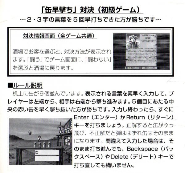 西部劇を舞台にしたタイピングゲーム(練習)ソフトです。