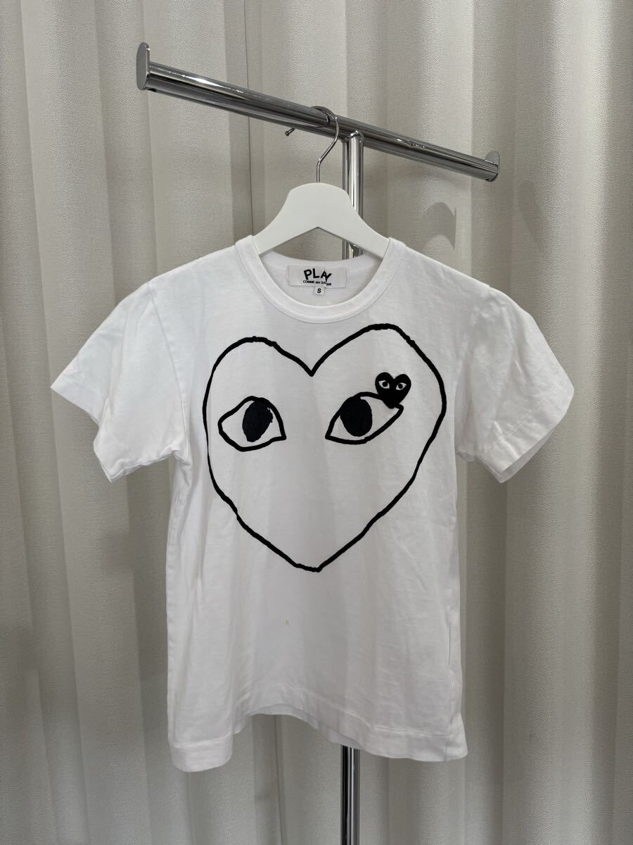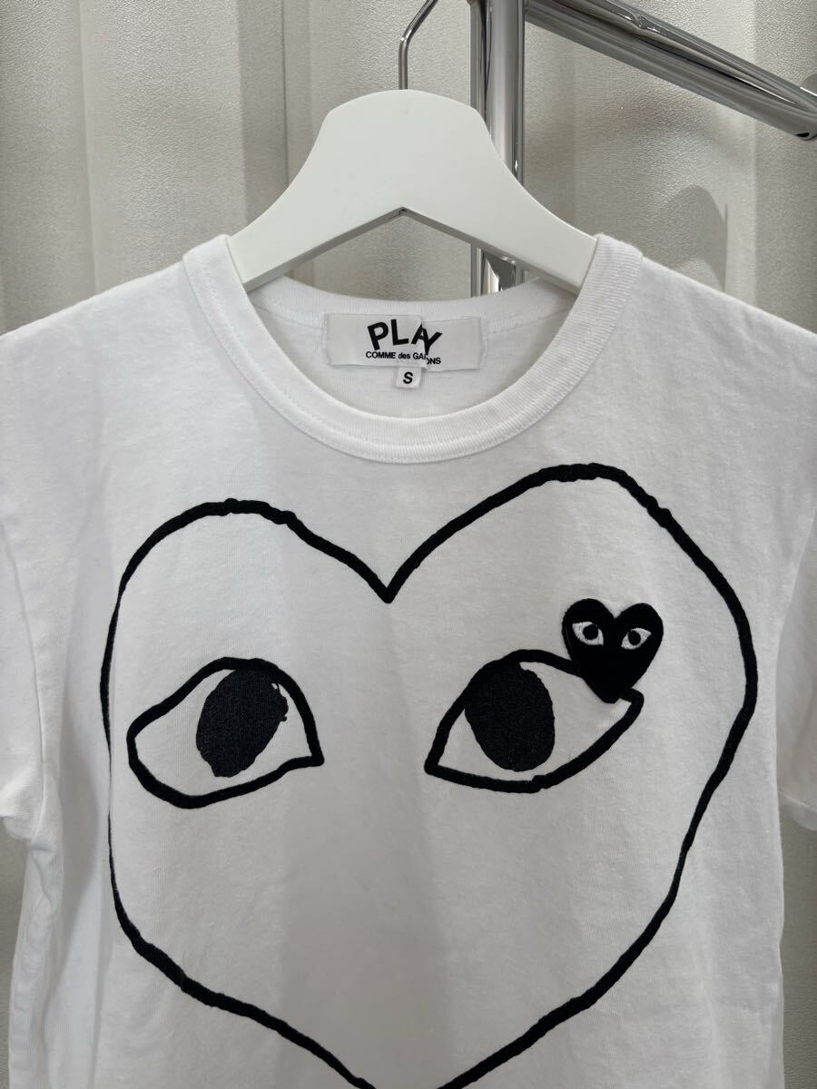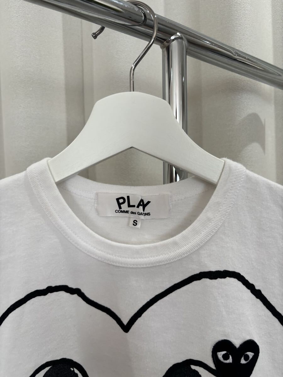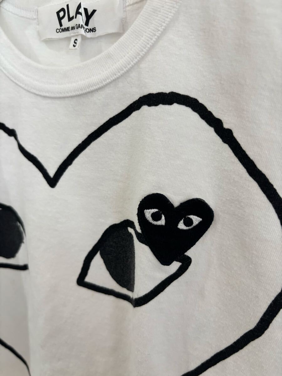 PLAY COMME des GARCONS プレイコムデギャルソン 半袖Tシャツ ワッペン ロゴプリント ブラック ホワイト S