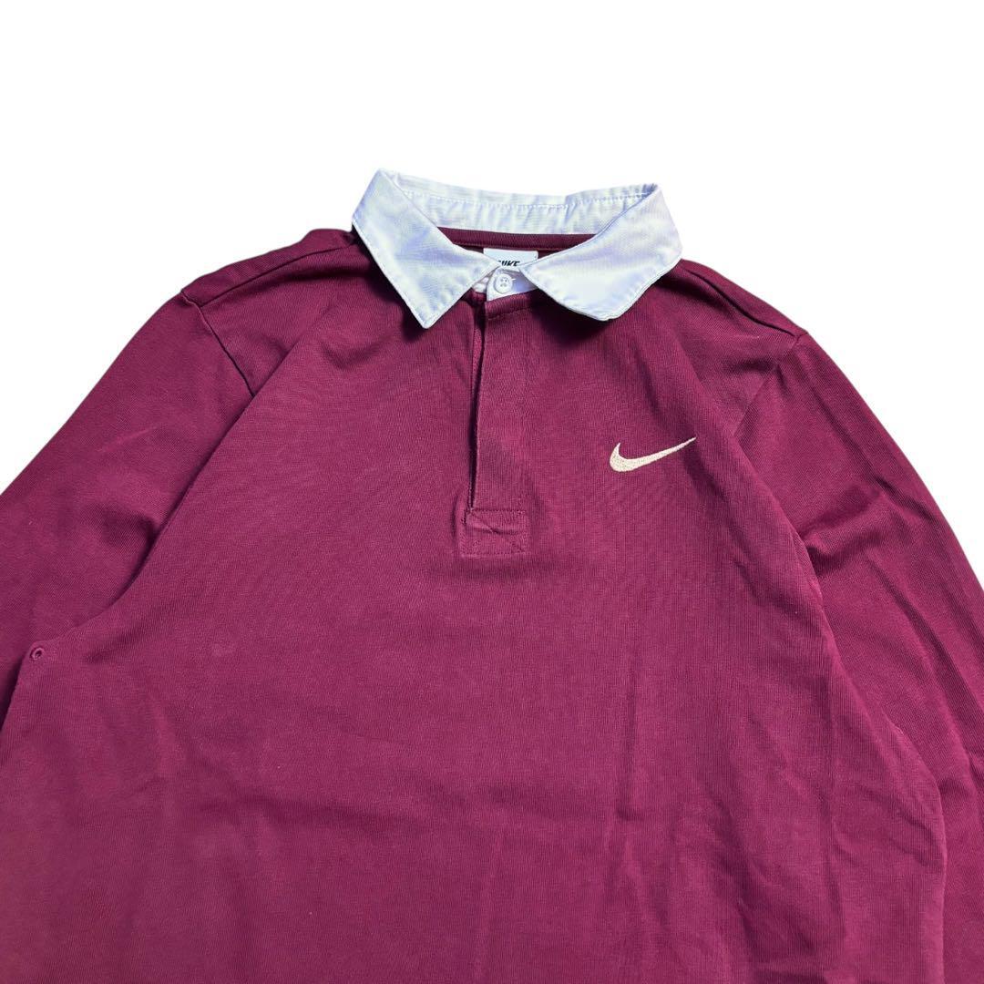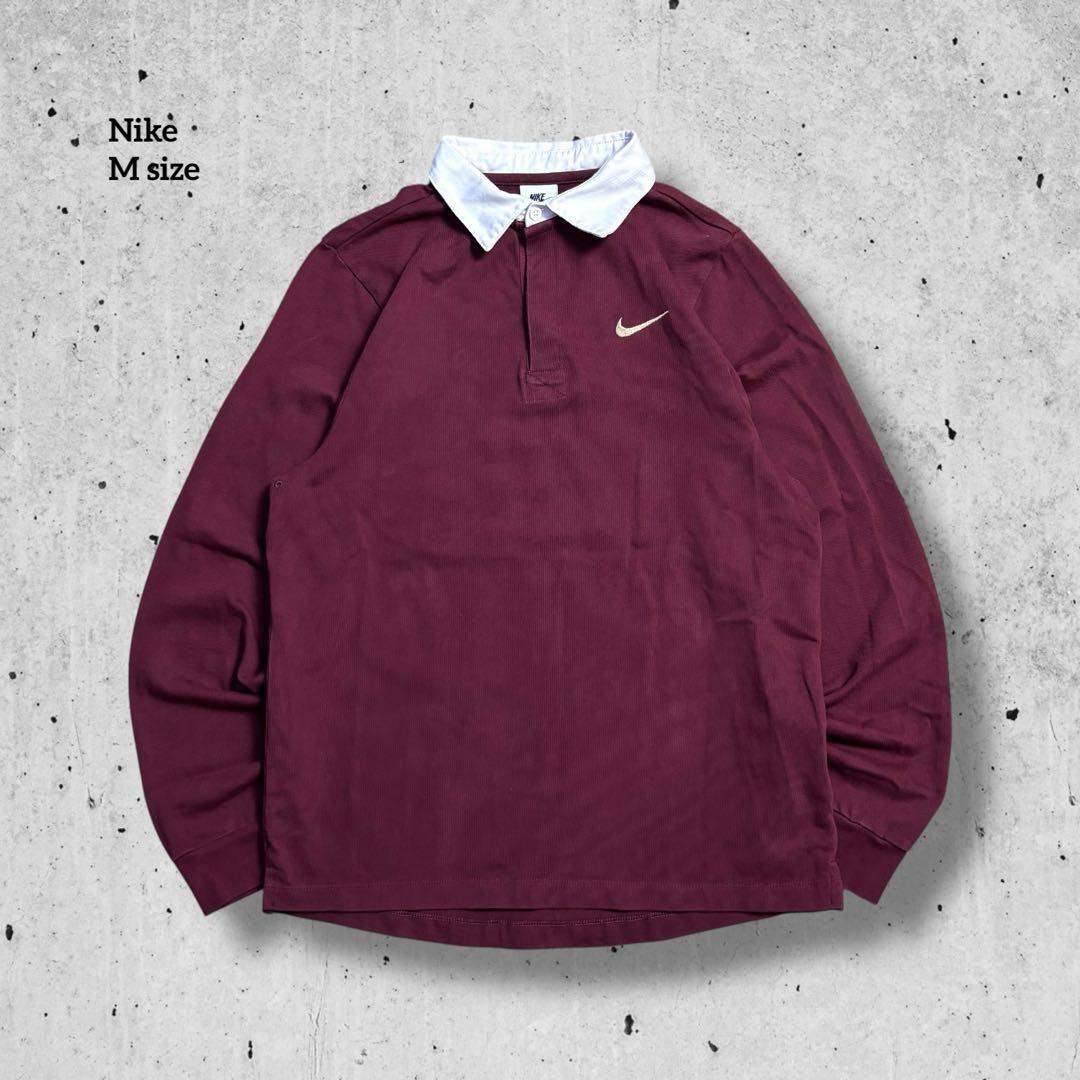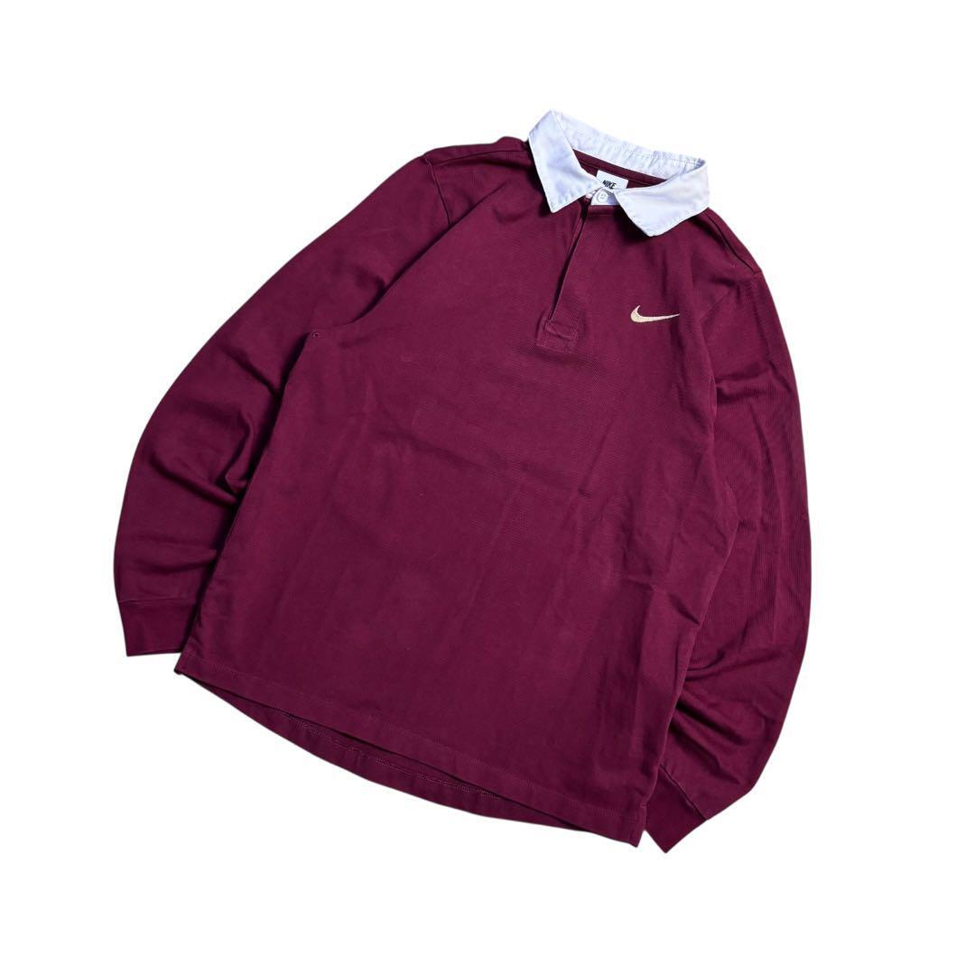 ★NIKE 刺繍ロゴ ラガーシャツ バーガンディ Mサイズ★