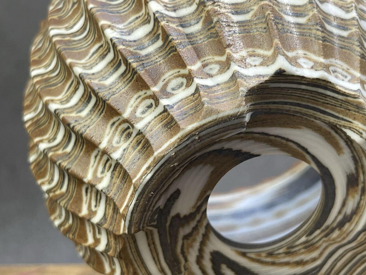 工業的な造形の中に、手仕事の温もりと偶然の美を宿した一点もの。