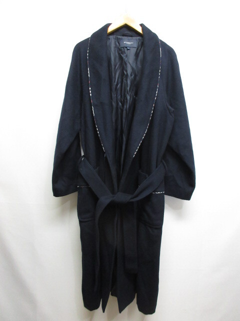 バーバリー ロンドン BURBERRY LONDON ロング ウール ガウン コート 腰ひも付き M 濃紺 ネイビー 裏地付き 西川産業 日本製 正規品