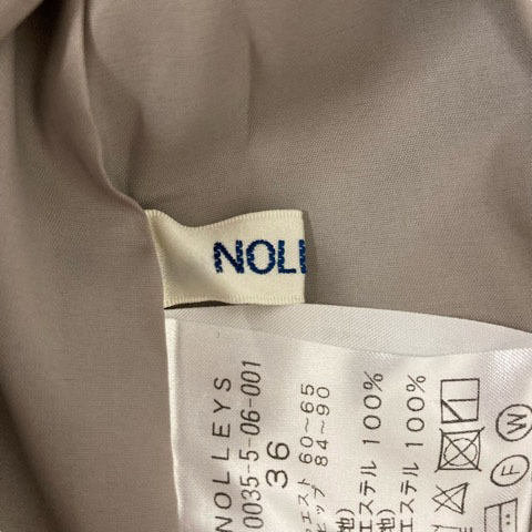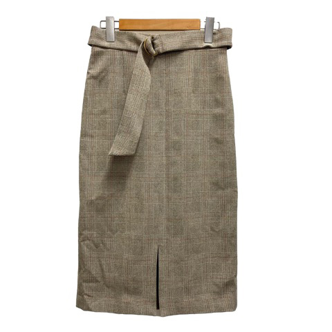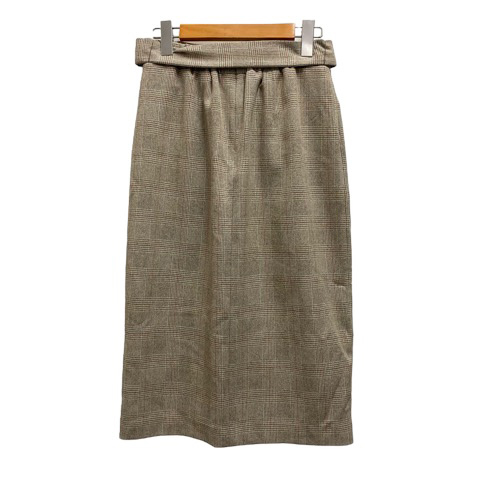 ノーリーズ Nolley's スカート タイトスカート フロントスリット タック ベルト付き グレンチェック 膝丈 36 ベージュ 茶 ブラウン レディース