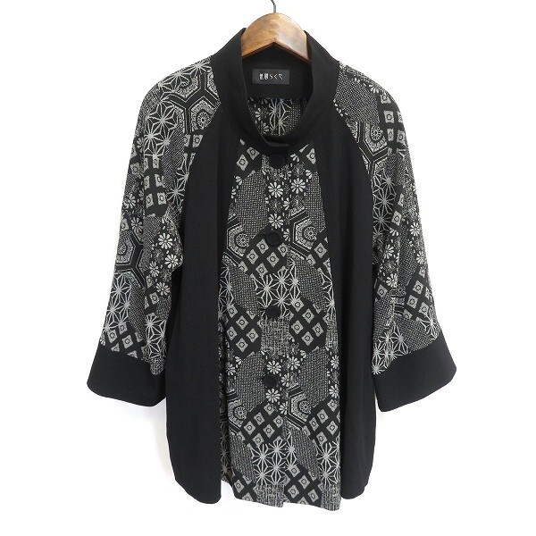 | 商品名 | #a 祇園らくや ジャケット 黒 グレー フリー 和柄 和風 丹後 ちりめん 縮緬 羽織り スタンドカラー 日本製 948309 k01 |