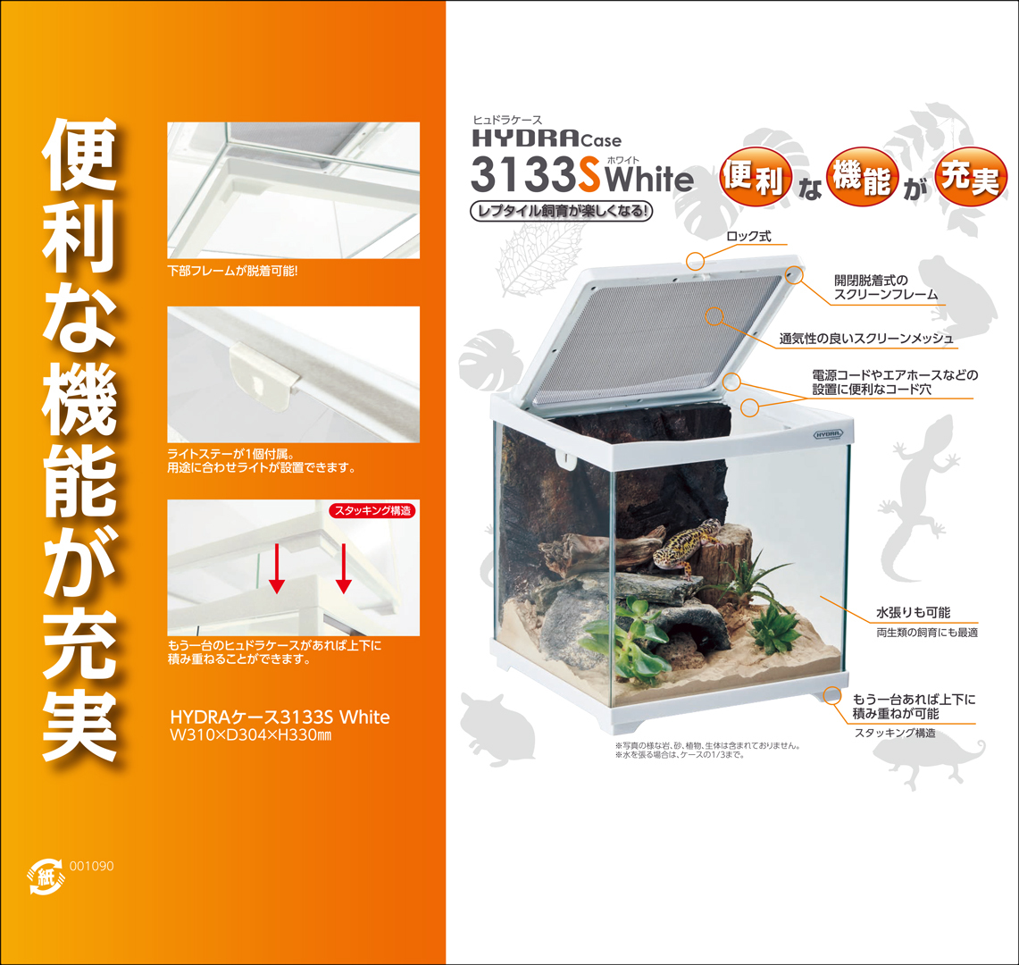 ※ ヒュドラケース3133Sホワイト コトブキ工芸(KOTOBUKI) 爬虫類用ガラス飼育ケージ 新品 消費税0円 ※