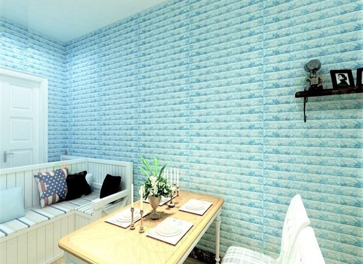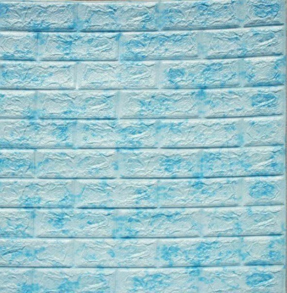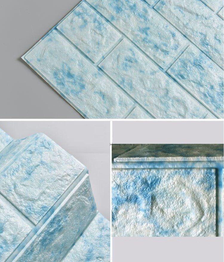 【30枚】高品質 3D クッション 壁 シール 大理石×水色 レンガ調 糊付き リメイク 70×77cm 耐水 抗菌 傷防止