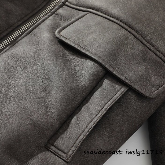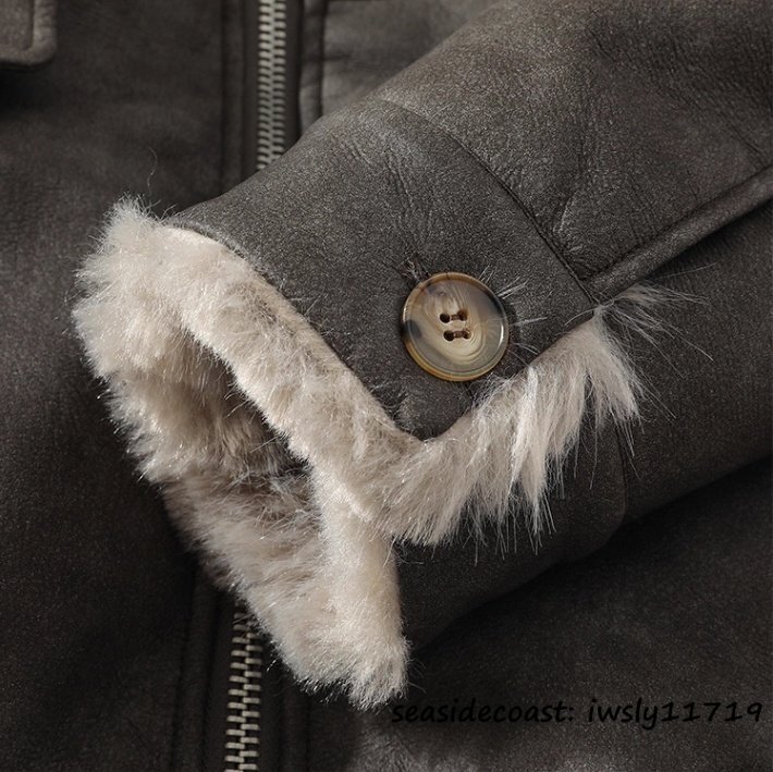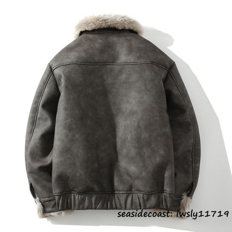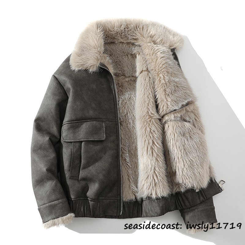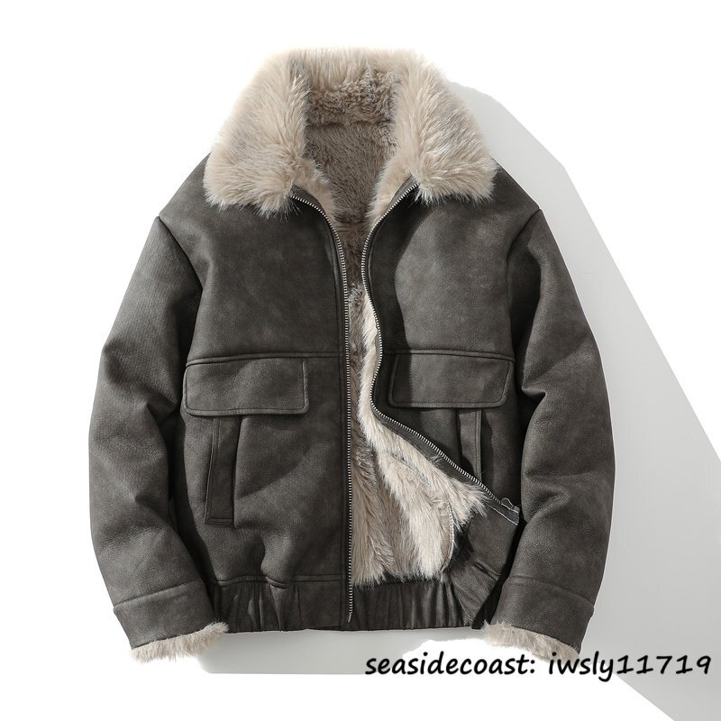 新品◆入手困難 ムートンコート 裏ボア ファーコート 厚手 超防寒 毛皮 フライトジャケット ライダース ブルゾン ジャンバー グレー 4XL