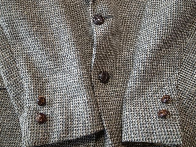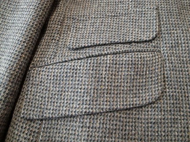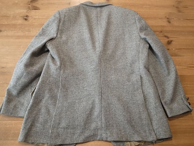 ◆ブランド 「SIENNA FINE CLOTHING」 1970年代 ビンテージ アメリカ古着 ●サイズ表記 なし 実寸サイズ XL相当 肩幅…48cm(肩先から肩先の間の長さ) 身幅…58cm(両脇を横直線に結んだ長さ) 着丈…77cm(後衿ぐり中央から後身頃裾) 袖丈…64cm(袖付けの肩先から袖先) ※平置き状態での素人採寸ですので、多少の誤差はご了承ください。 ●素材…ウール ツイード素材 ●色…黒×ベージュ×茶×カーキ×グレーなど ピンチェックツイード ●ポケット… フラップポケット チェンジポケット付き ●裏地…背抜き仕立て ●ベント…サイドベンツ ●製造国表記…USA(ユニオンチケット付き) ●状態…使用感は少ない美品です。 ★送料 全国一律 700円 佐川急便 (北海道900円 沖縄その他離島1700円) ※複数ご購入の場合、同梱発送可能です。 |