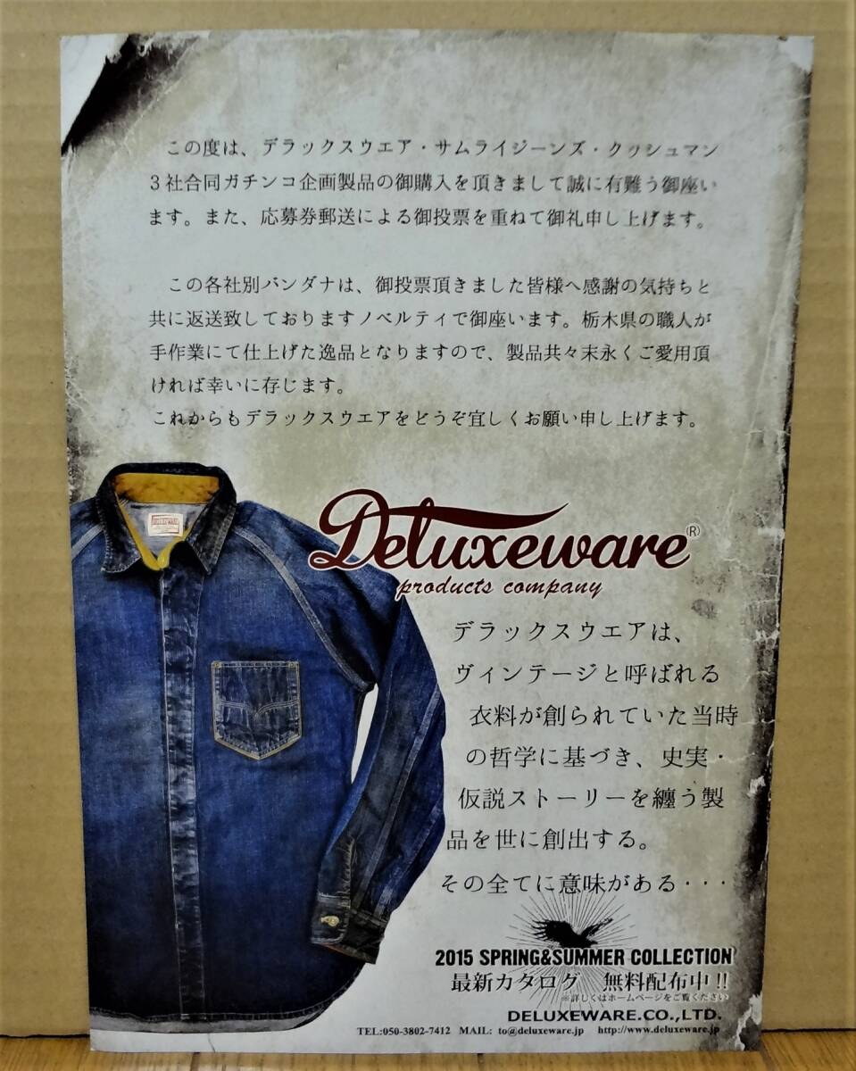 デラックスウエア バンダナ ノベルティ クッシュマン サムライジーンズ トリプルネーム ガチネルプラン2015特製バンダナ