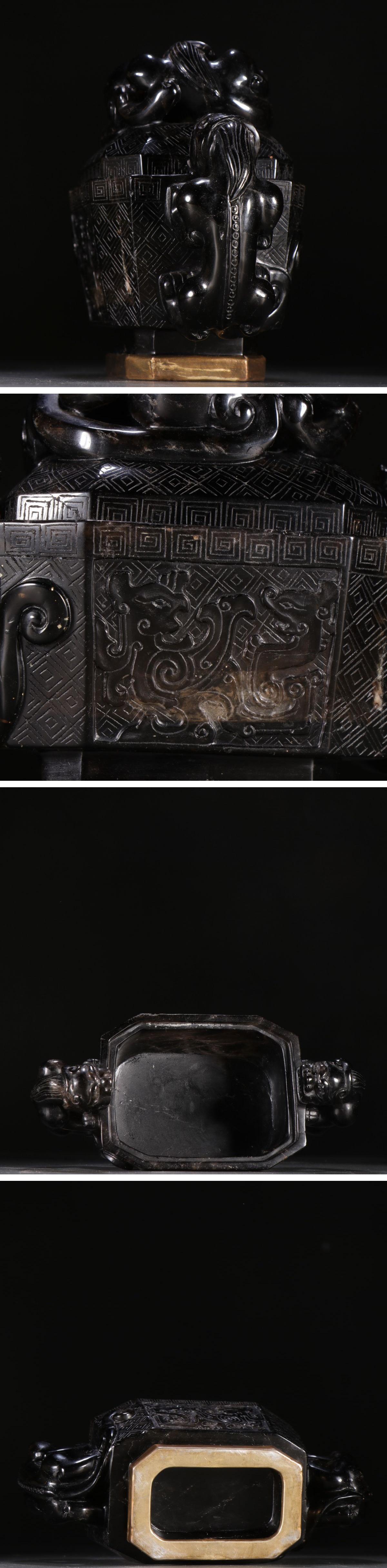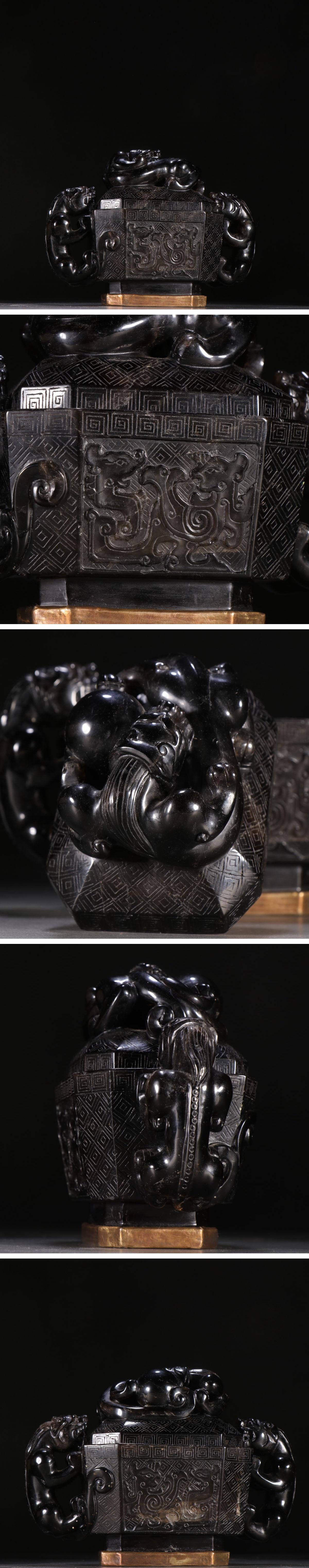 【清】某有名オークション購入 清時代 茶晶 龍耳巨大蓋爐 古置物 古擺件 古美術 時代コレクション7L9-BG5