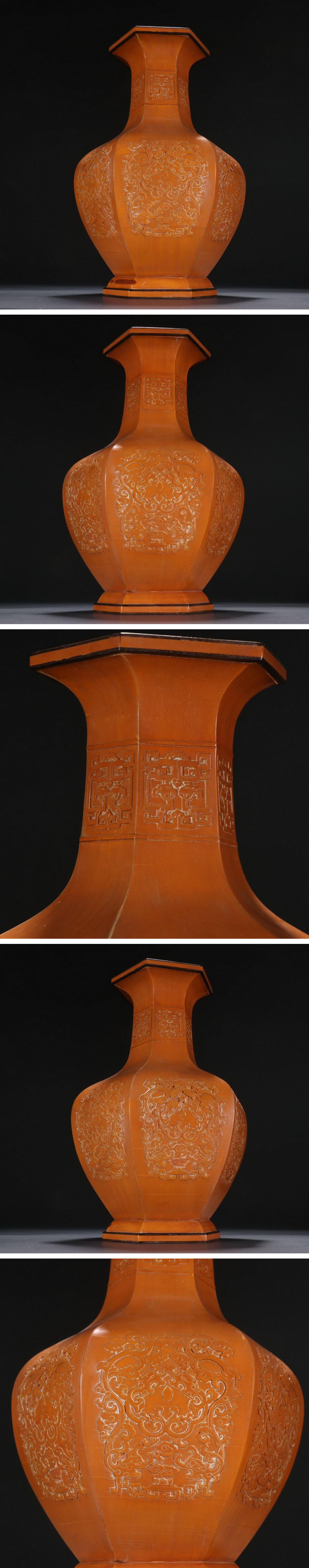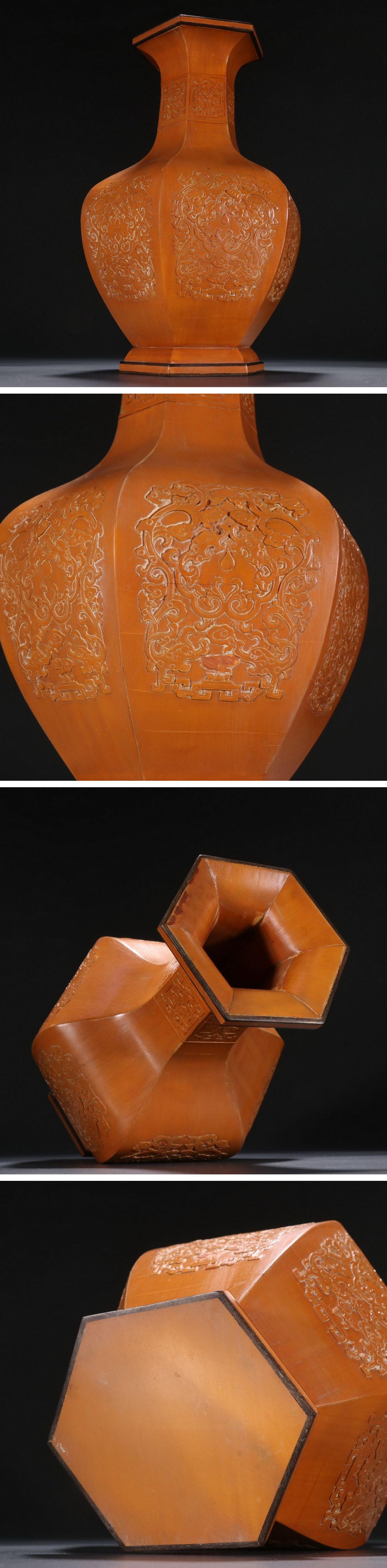 【清】某有名オークション購入 清時代 木胎 貼黄 雲龍文八方瓶 材質保証 古置物 古擺件 古美術 時代コレクション7L9-BYD1