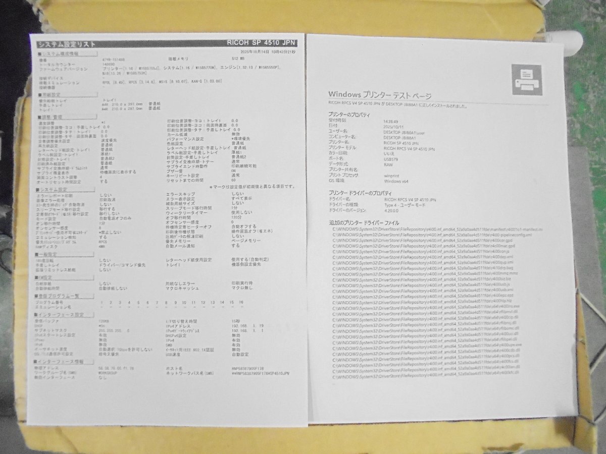 | 商品名/型番 | ジャンク 中古レーザープリンタ RICOH SP4510 中古トナー/ドラム付き |