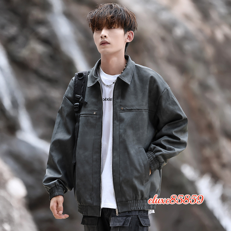 秋冬 メンズ レザージャケット ライダース ノータッチカラー ジャンパー ブルゾン シティーボーイ 男女兼用 アウター M~3XL選択 ブラック