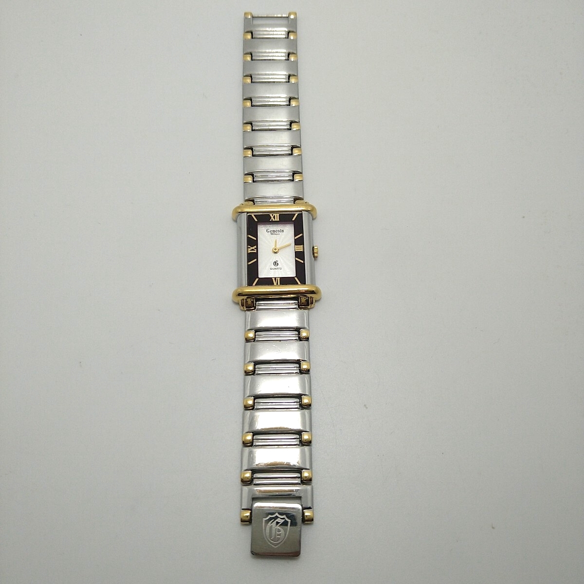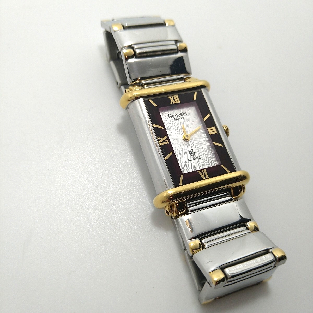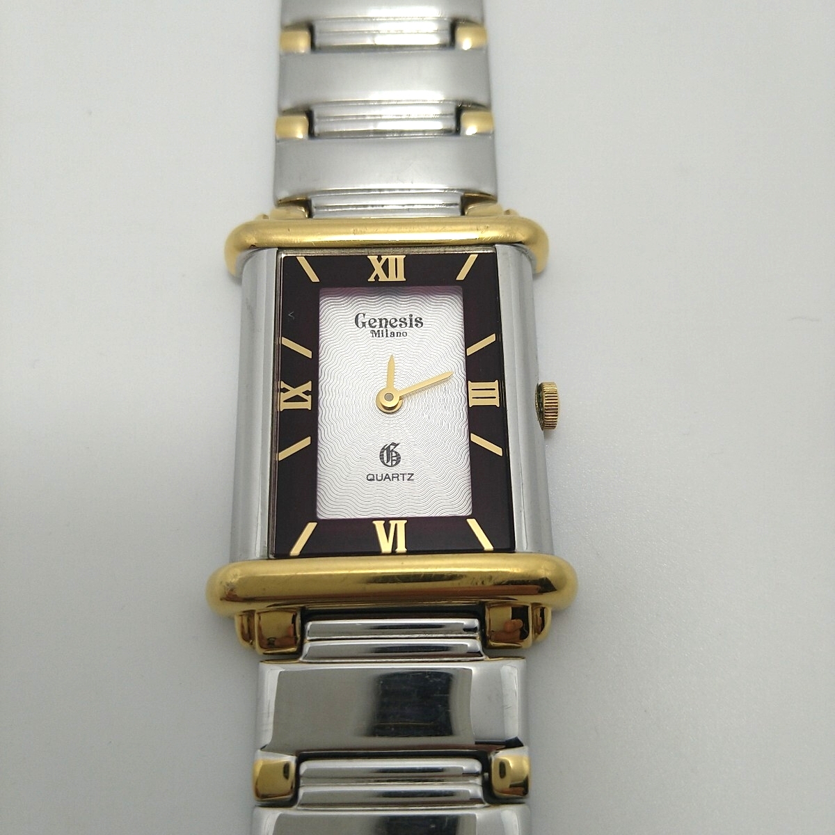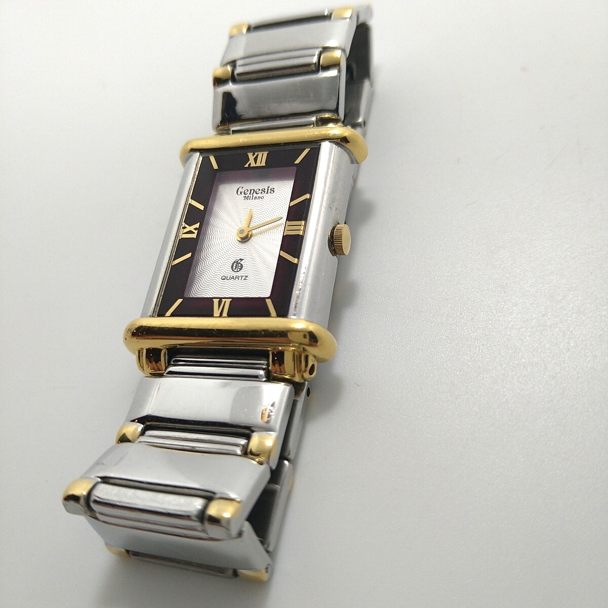 文字盤には「Genesis Milano」と「QUARTZ」の表記があります。