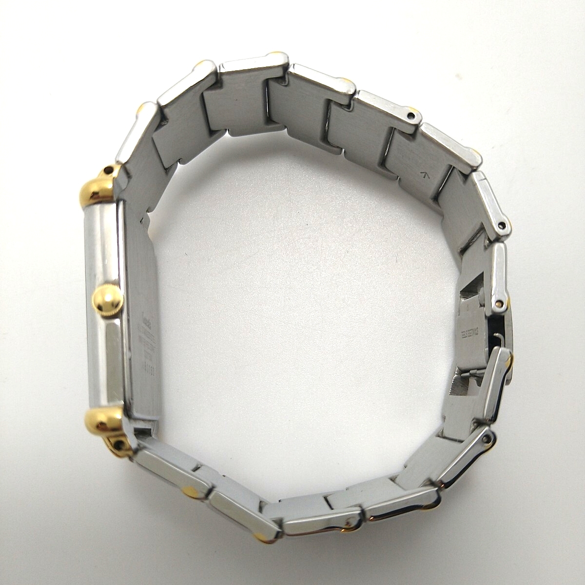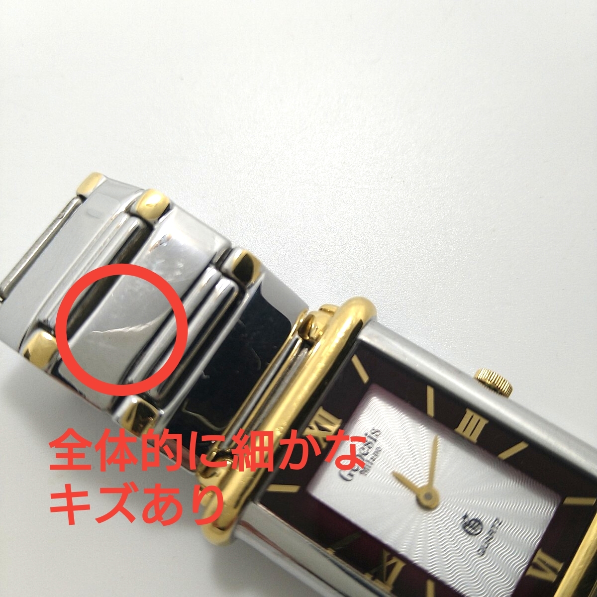 ゴールドとシルバーのコンビカラーで、スクエア型のケースが特徴です。