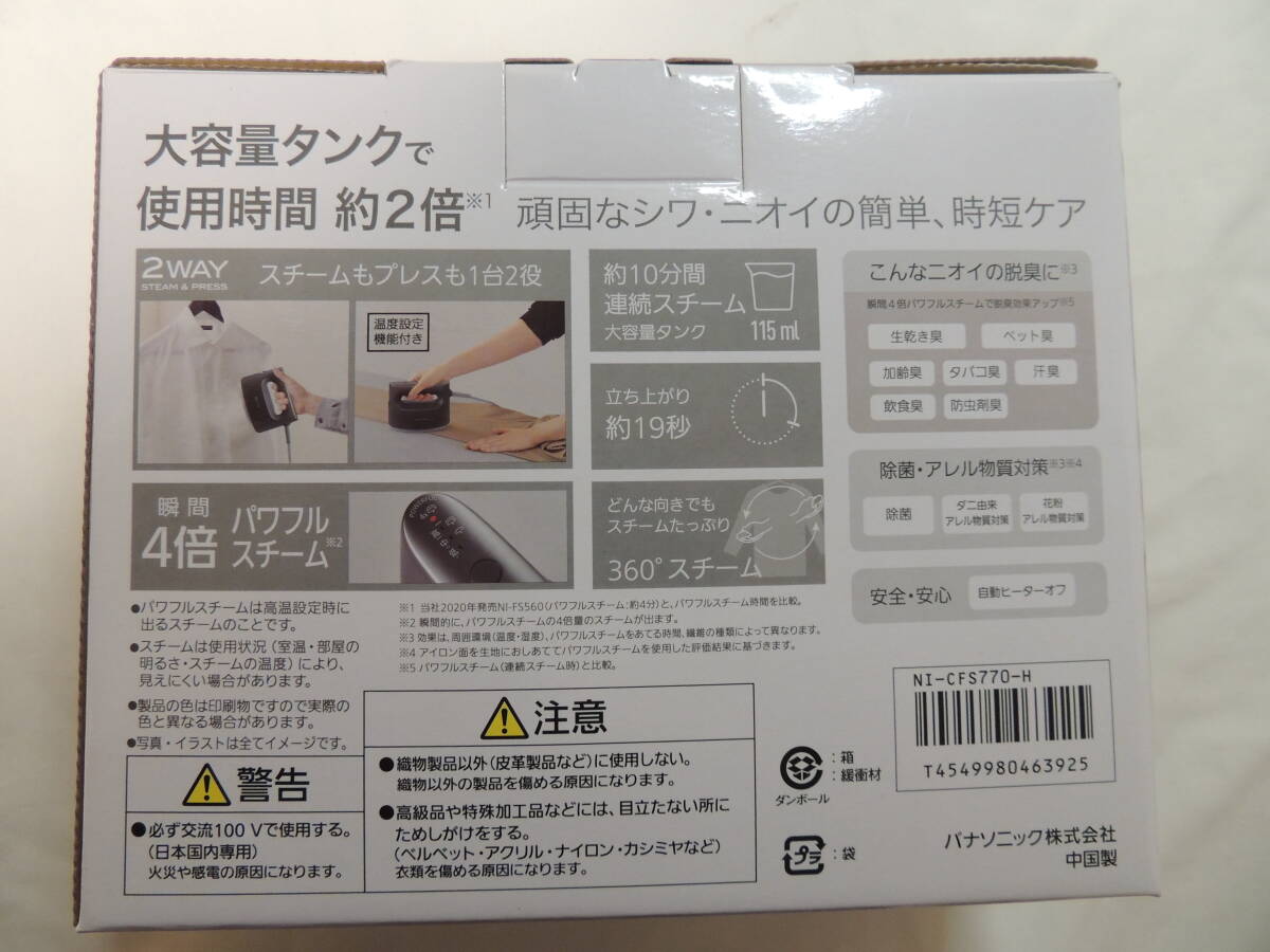 【アイロン・スチーム】パナソニック 衣類スチーマー NI-CFS770 Panasonic 2021年製【新品未使用】