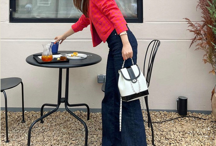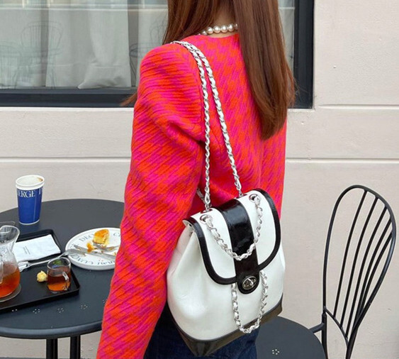 韓国 おしゃれ ミニサイズ 巾着バッグ オフィスカジュアル リュック レディース チェーンバッグ 肩掛け 通勤 通学 ブラック&ホワイト