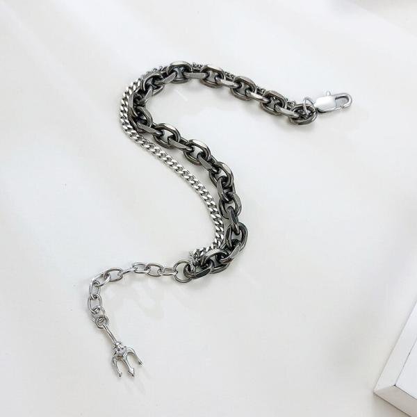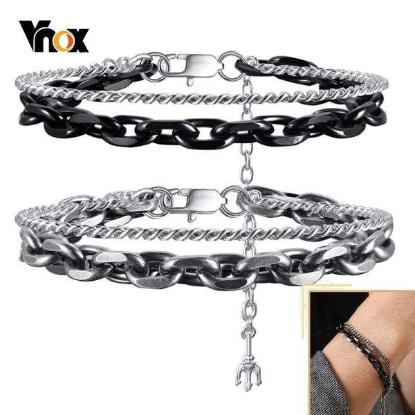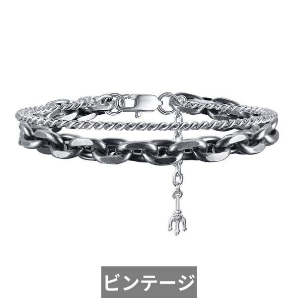 ビンテージ スタック チェーン ブレスレット メンズ レトロ リンク リストバンド トライデント チャーム シンプル レイヤー ジュエリー