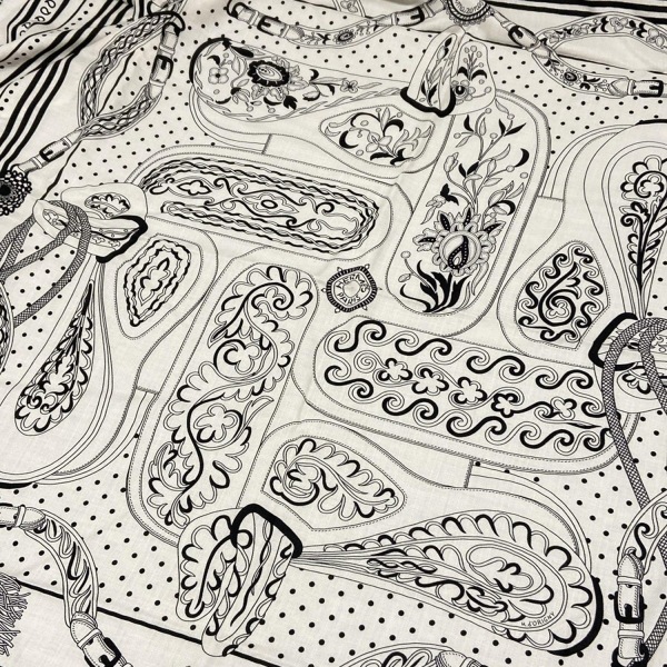 エルメス HERMES ストール(ショール) カレジェアン/ショール カレ140 カシミヤ、シルク アイボリー×黒 美品 マフラー