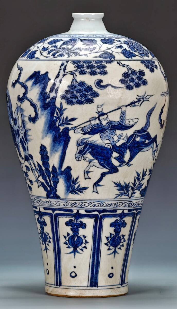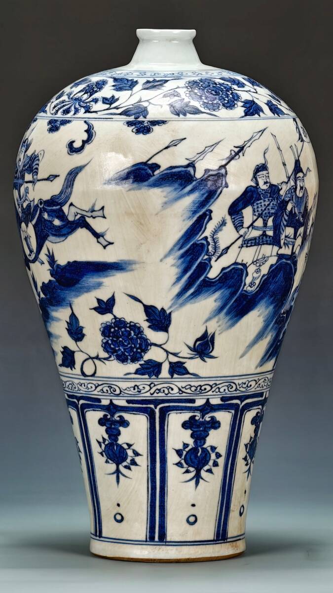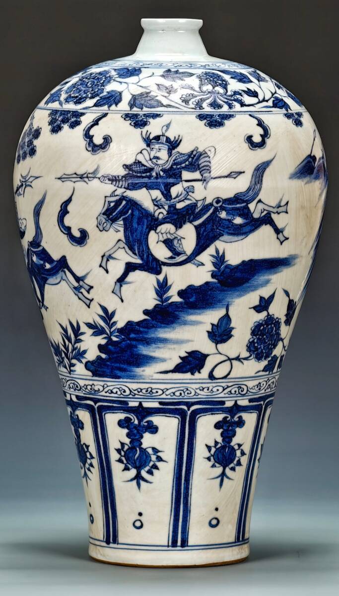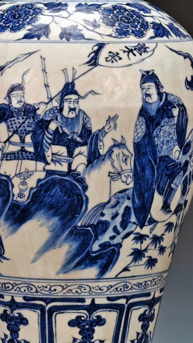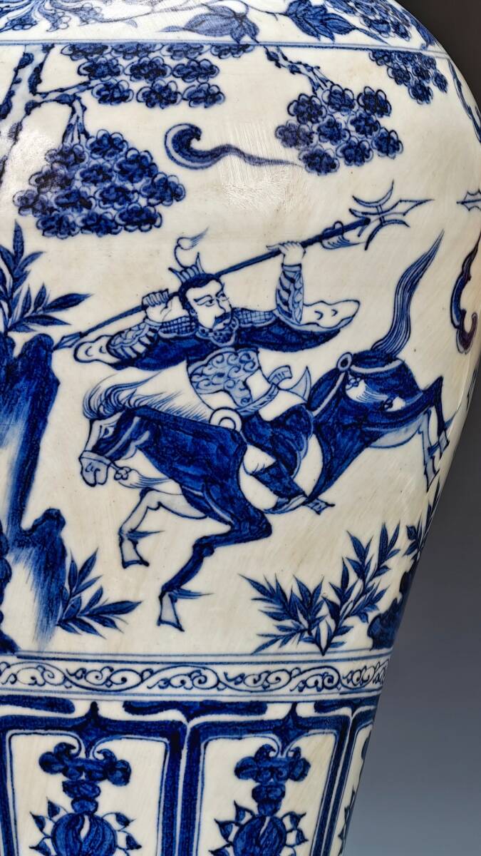中国磁器 陶芸 磁器『明早期永宣/精工細作満工青花『尉遅恭単騎救主』紋梅瓶』施釉陶 古代工芸品 陶芸 精美彫 置物 收藏品 | |||