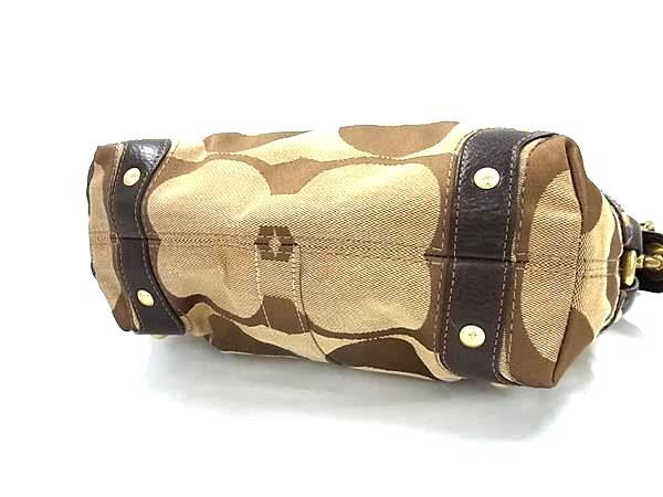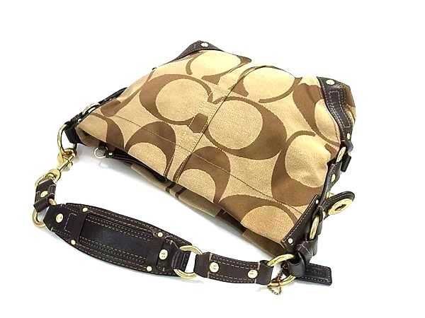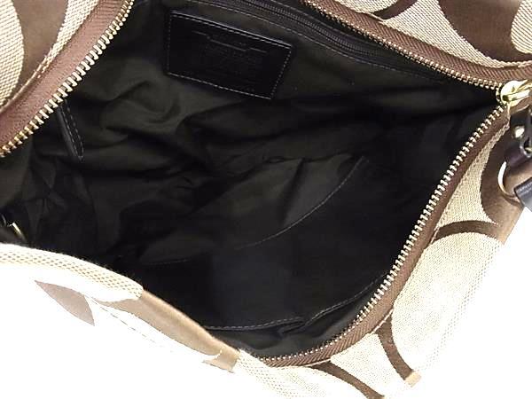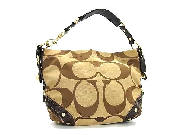 1円 ■美品■ COACH コーチ F10619 シグネチャー キャンバス×レザー ワンショルダーバッグ ハンドバッグ ブラウン系×ベージュ系 FR5043