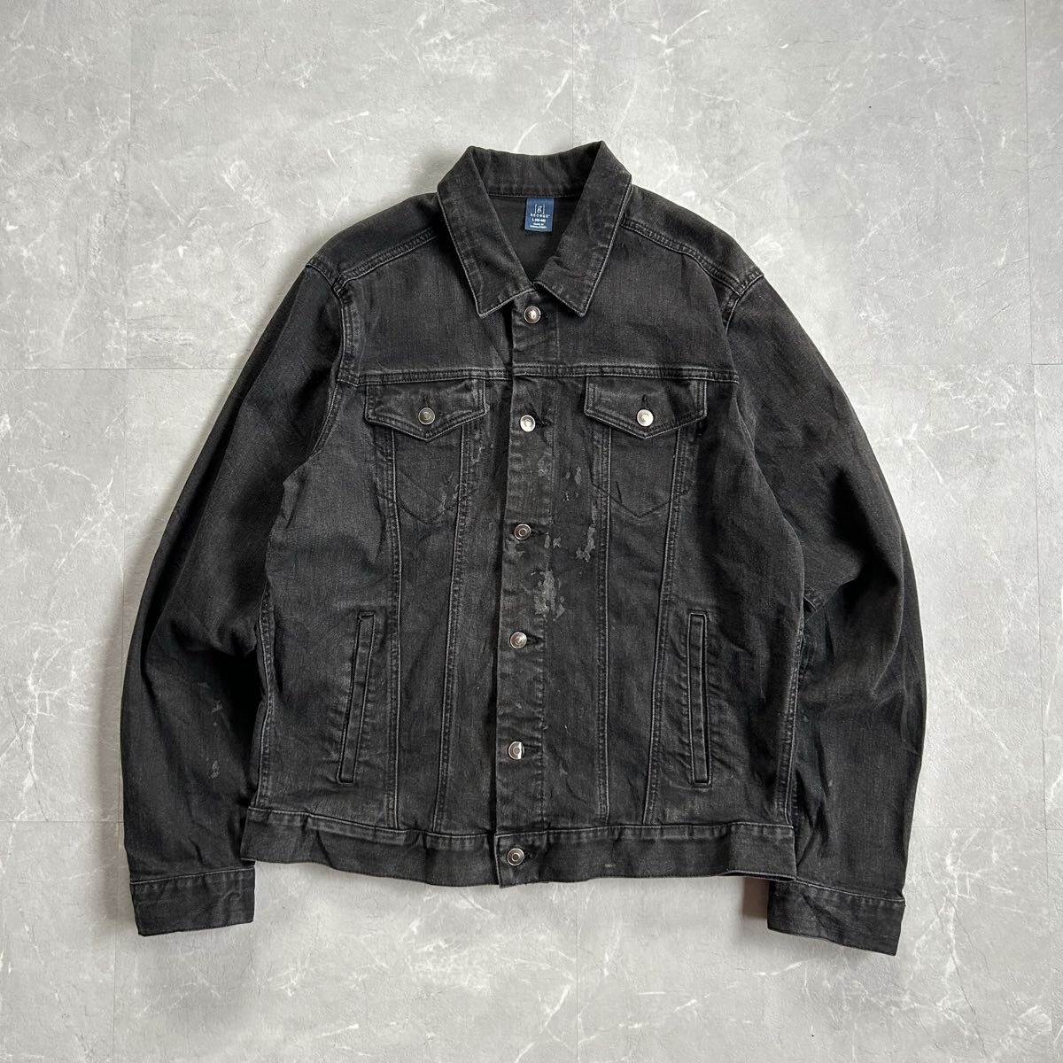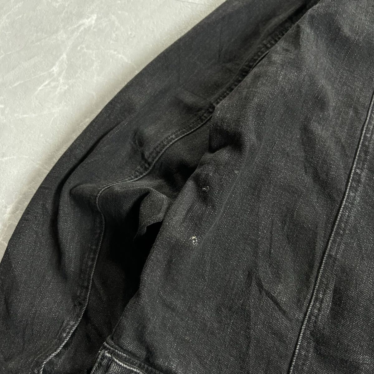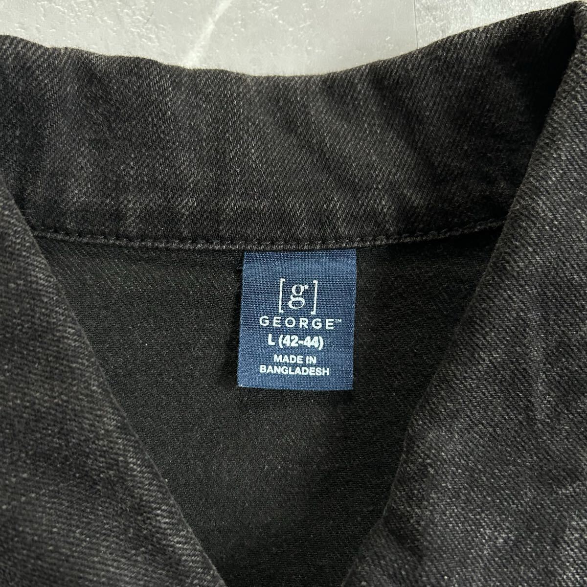 90s〜00s GEORGEのブラックデニムジャケットになります。近年では、古着のブラックデニムジャケットは希少かと。また、ポリやレーヨンが入っているのでゴワゴワ感なく着心地が良いのでオススメです。