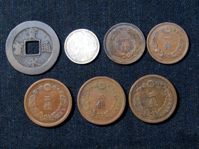 【会】☆古銭 寶永通寶 50銭銀貨 稲1銭 竜1銭 竜2銭 計7枚☆