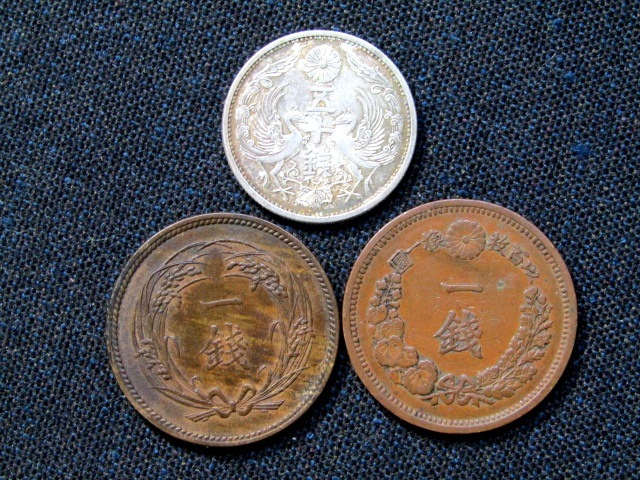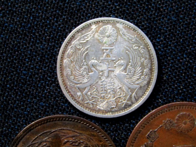 【会】☆古銭 寶永通寶 50銭銀貨 稲1銭 竜1銭 竜2銭 計7枚☆