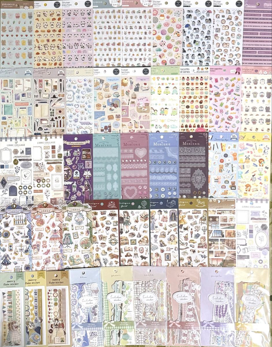 かわいいシートシール、フレークシールのまとめ売り45枚です。