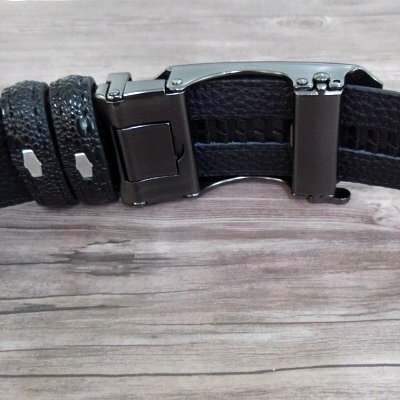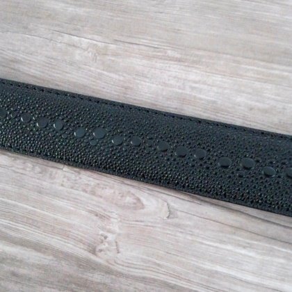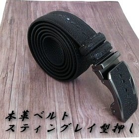HA0186【新品】本革ベルト スティングレイ型押し 男性用 3XLサイズ 長さ130㎝ 幅3.5㎝ ブラック バックル メンズ 長さカット可能 タイ製
