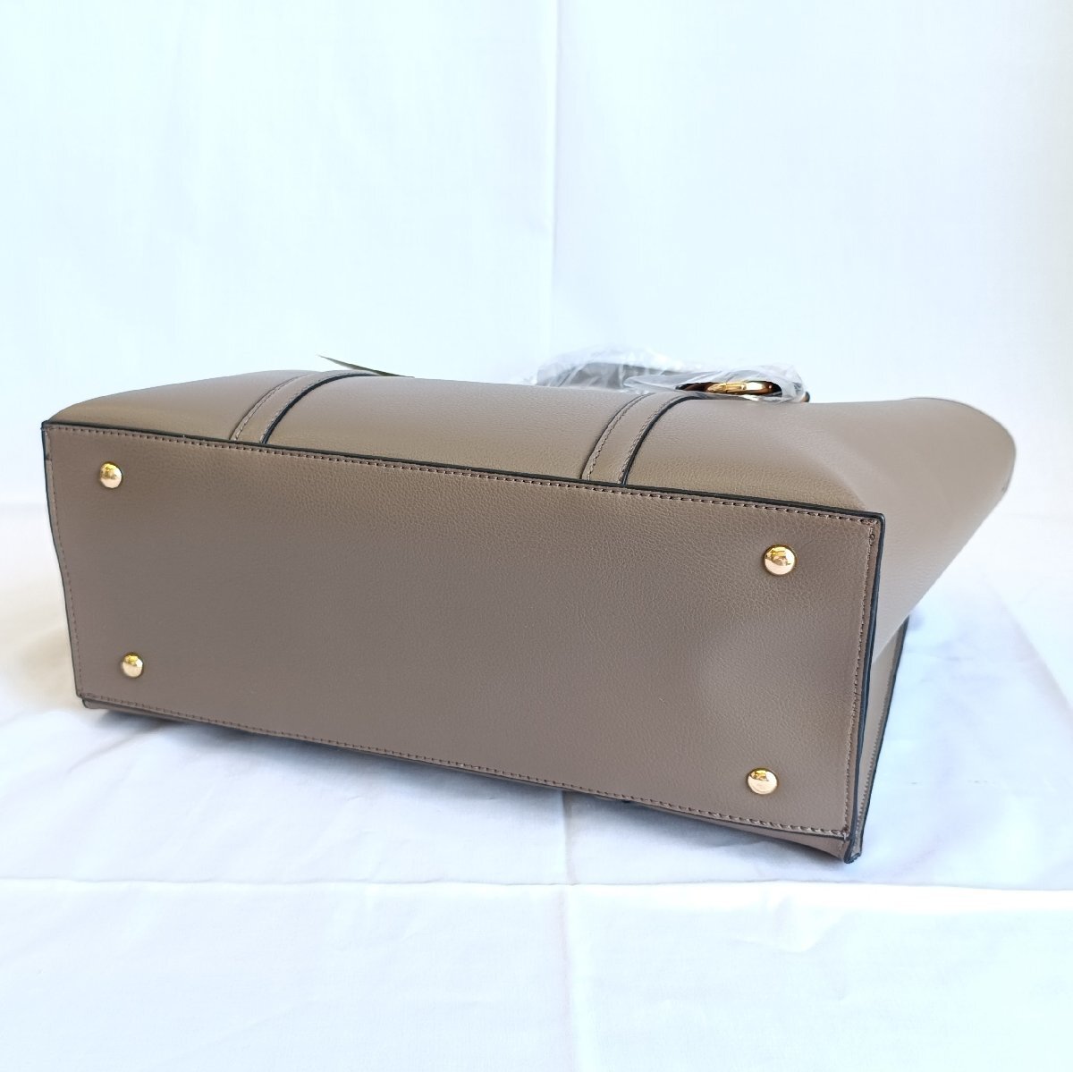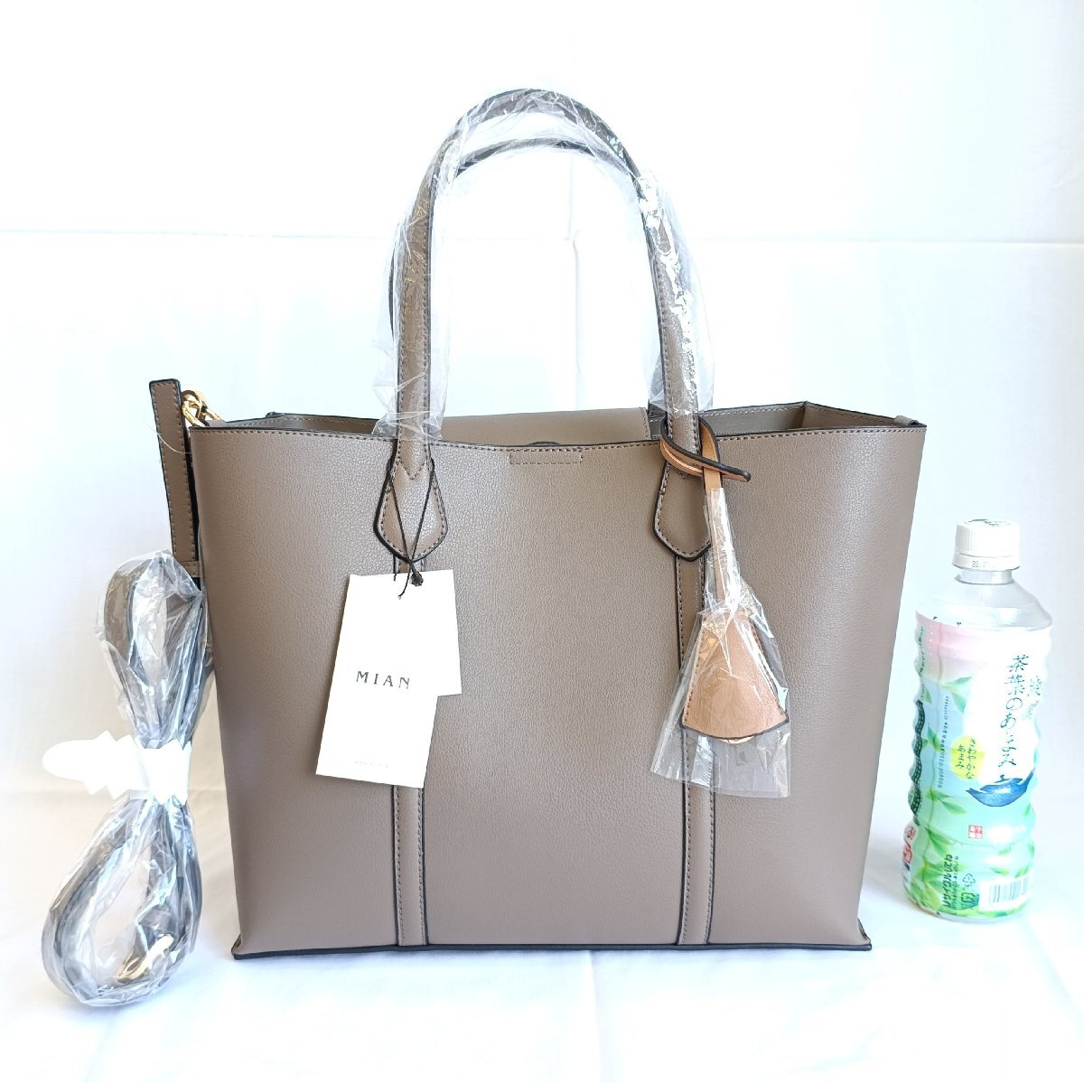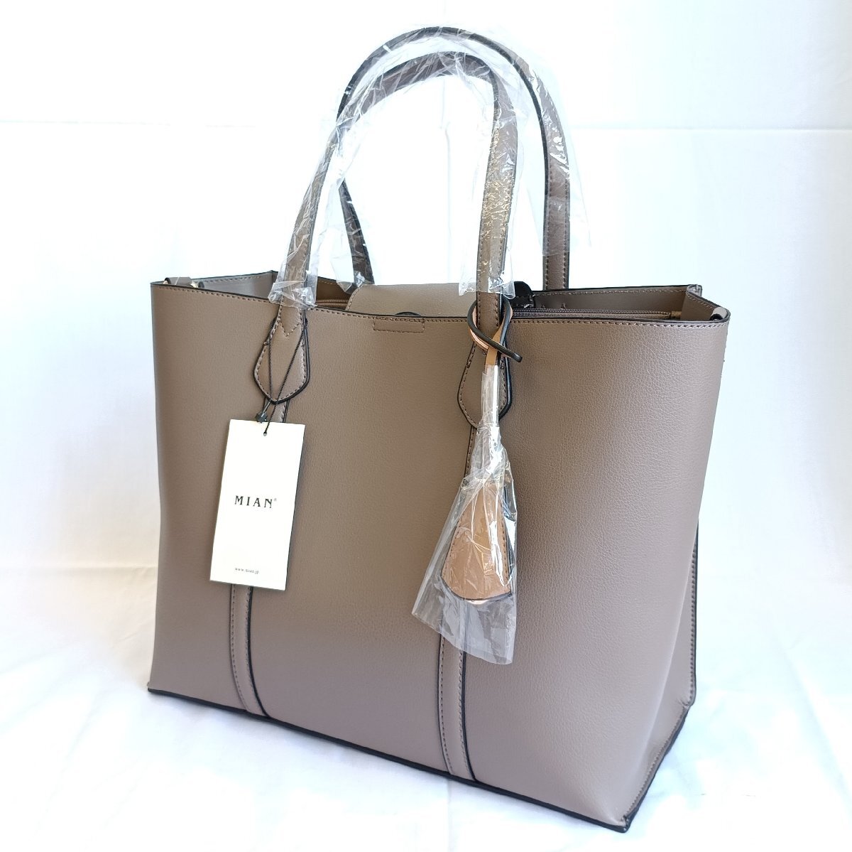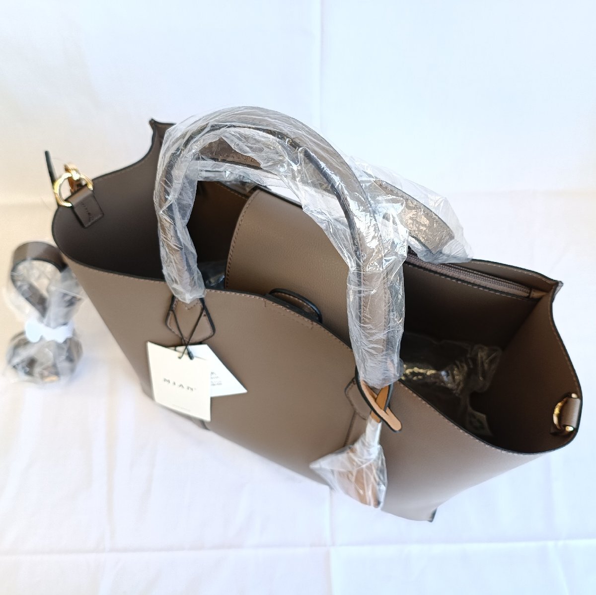 ■カラー/モカ ■製品品番/2211-108-1 ◆ サイズ(cm): 高さ26/横上(横下)31(32)/マチ 12 ◆ 持ち手長さ(cm): 41 ◆ 重量: 600 ◆ ポケット数: 内側:2 ◆ 口元仕様: マグネット ◆ 付属品: ショルダーベルト