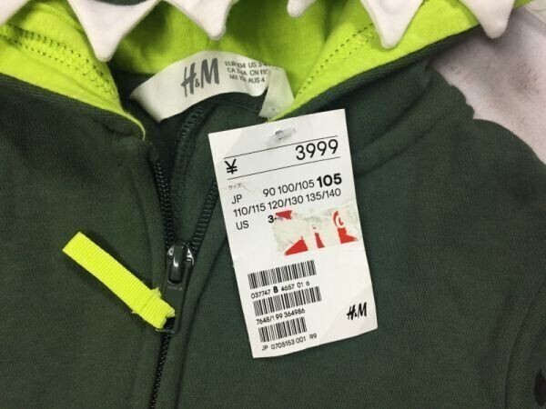 新品タグ付き H&M エイチアンドエム 恐竜 なりきり キャラクター つなぎ オールインワン ジャンプスーツ 着ぐるみ ボトムス キッズ 104cm です。