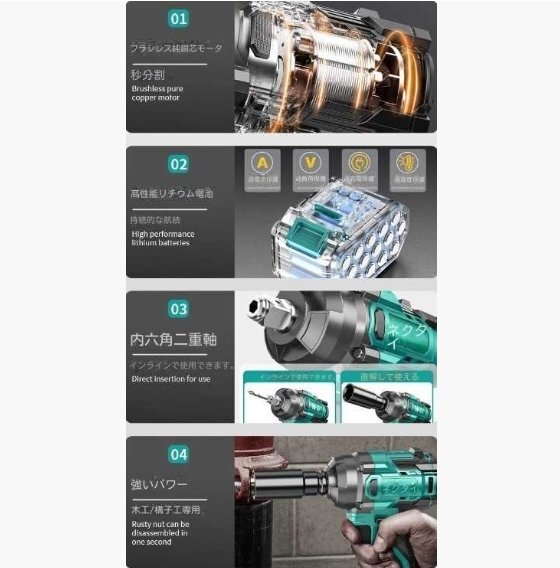 新品未使用の*可充電電働インパクトレンチ*450nm大ねじりブラシレスモーター* 3合一多機能*自動車修理用です