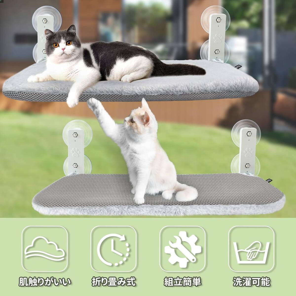 GUUSII HOME 猫窓ベッド ねこベッド 猫ハンモック 折畳み式猫ハンモック 吸盤 猫窓用ハンモック 猫窓ベッド 窓ハンモック 猫窓ベッド 吸盤式 ペットベッド ねこ ネコ キャットハンモック キャットマット 窓際マット 通気メッシュ 日光浴 ウィンドウベッド 洗える 猫用 耐荷重約25KG ストレス解消 組立簡単 日本語説明書付き (グレー(ラビットボア), M)