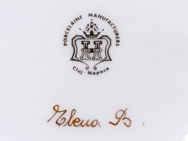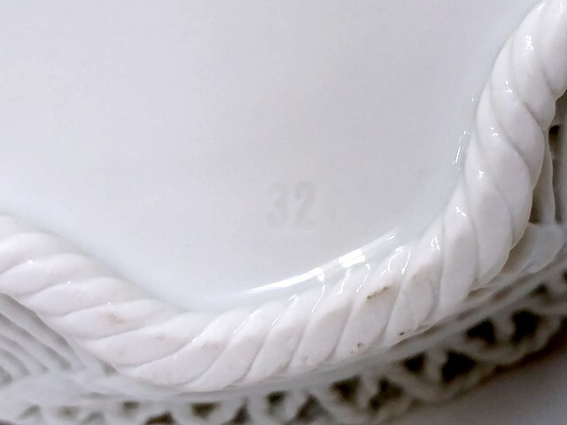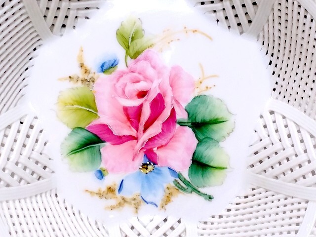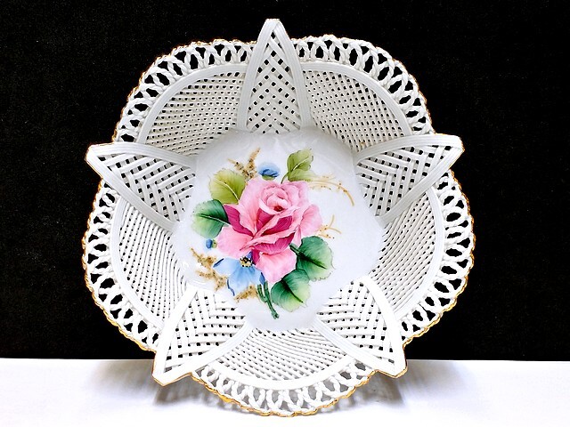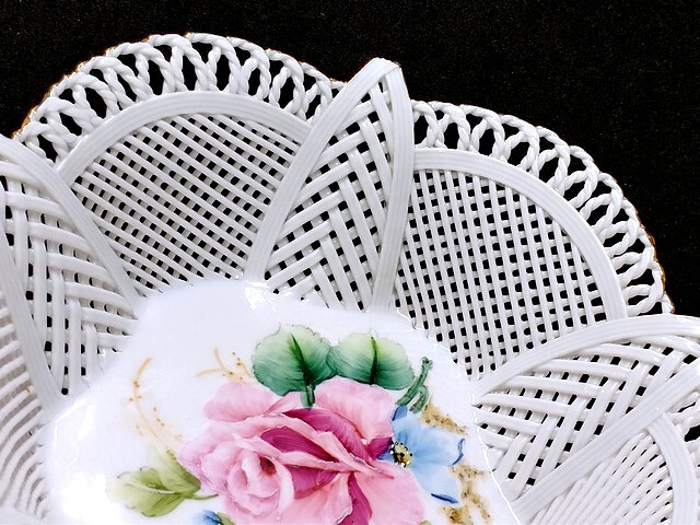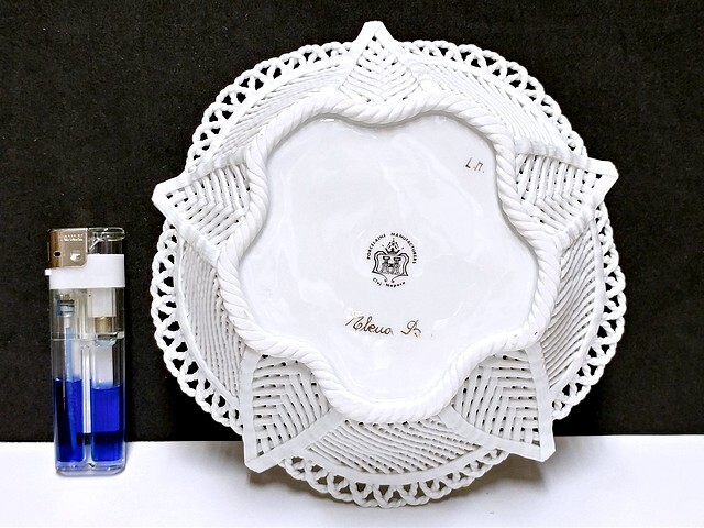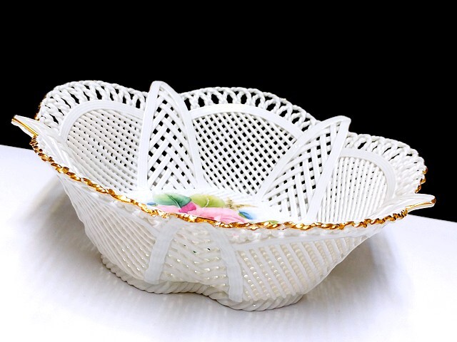 3QV売切!税無し☆クルジュ=ナポカ★レース編み★透かしボウル★バスケット★陶器★花★ルーマニア製★食器★現状★現品限り★1024-4