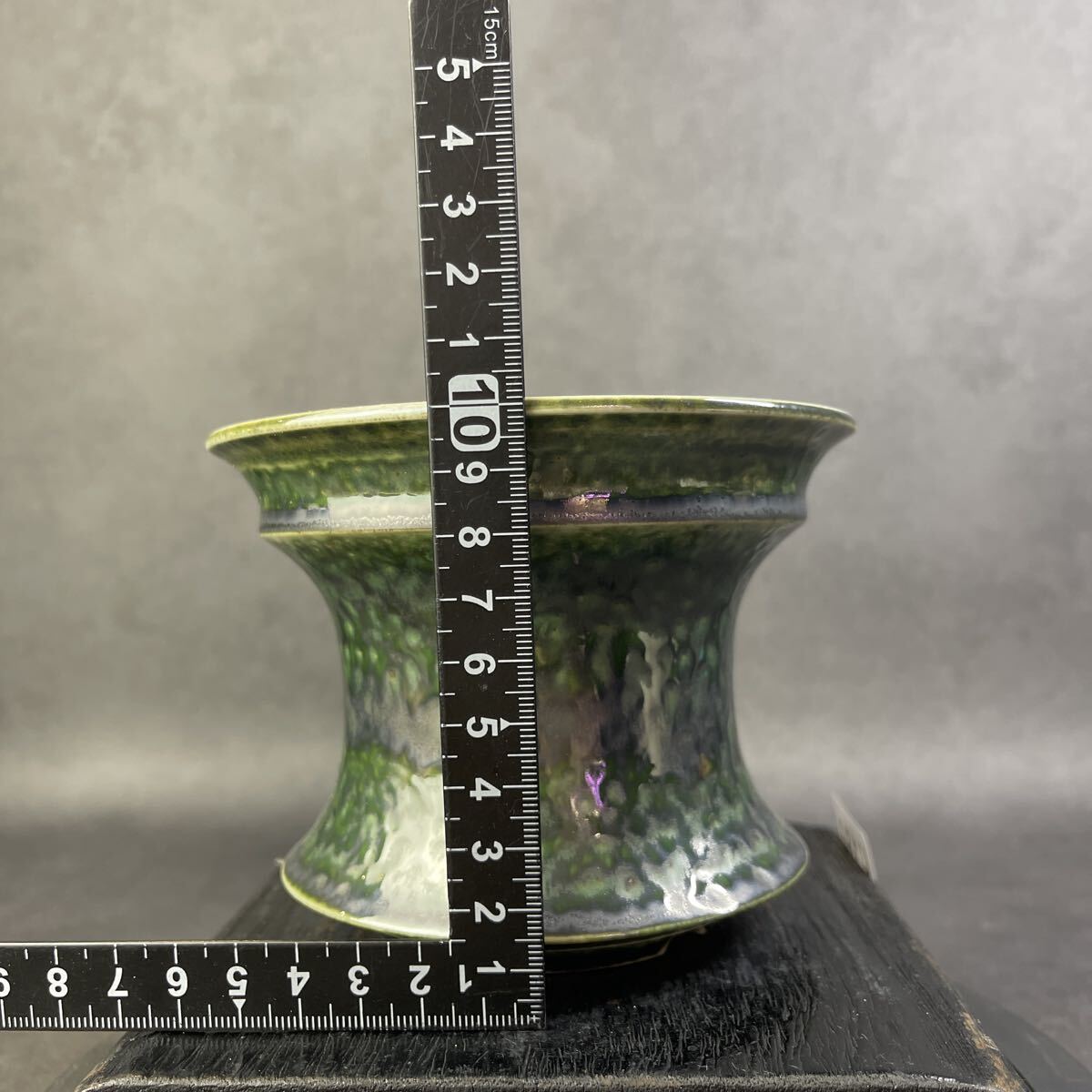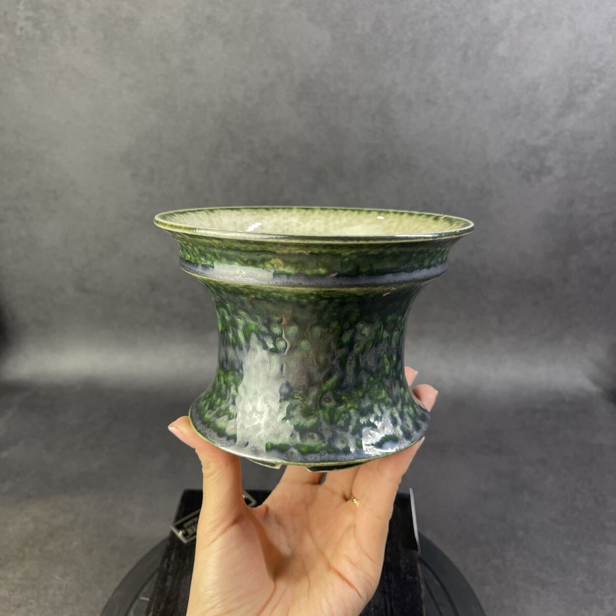 リ180 火山緑窯変 L HAND Made 植木鉢 陶器検(アガベ パキプス 姫巌竜 帝釈天 黒火焔 factory SRL カタチ製作所 グラキリス 塊根植物