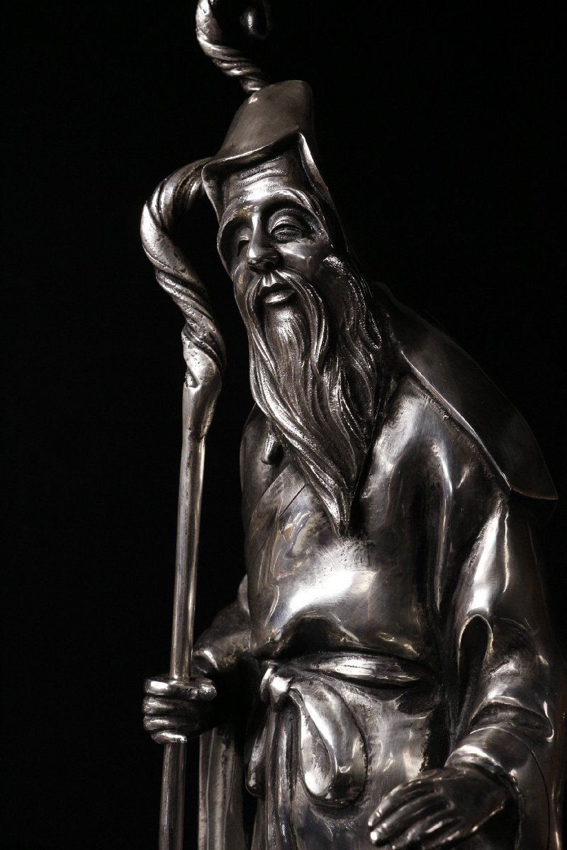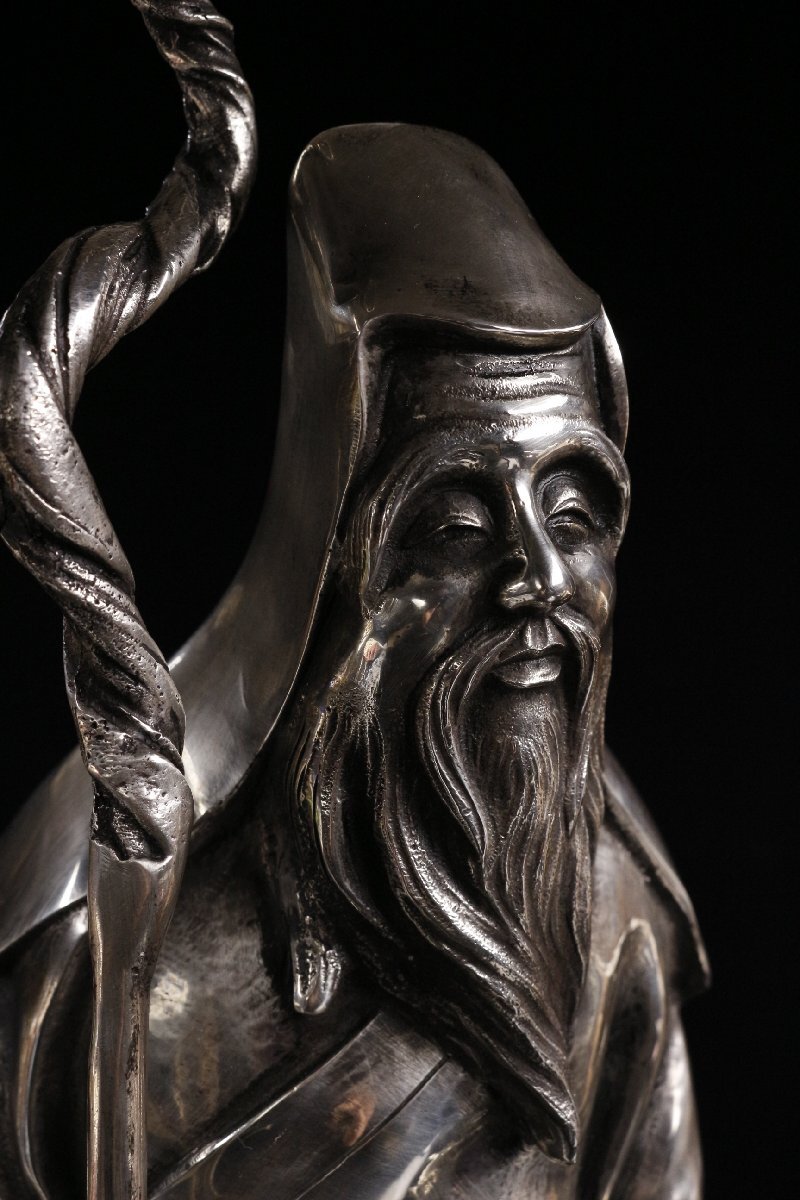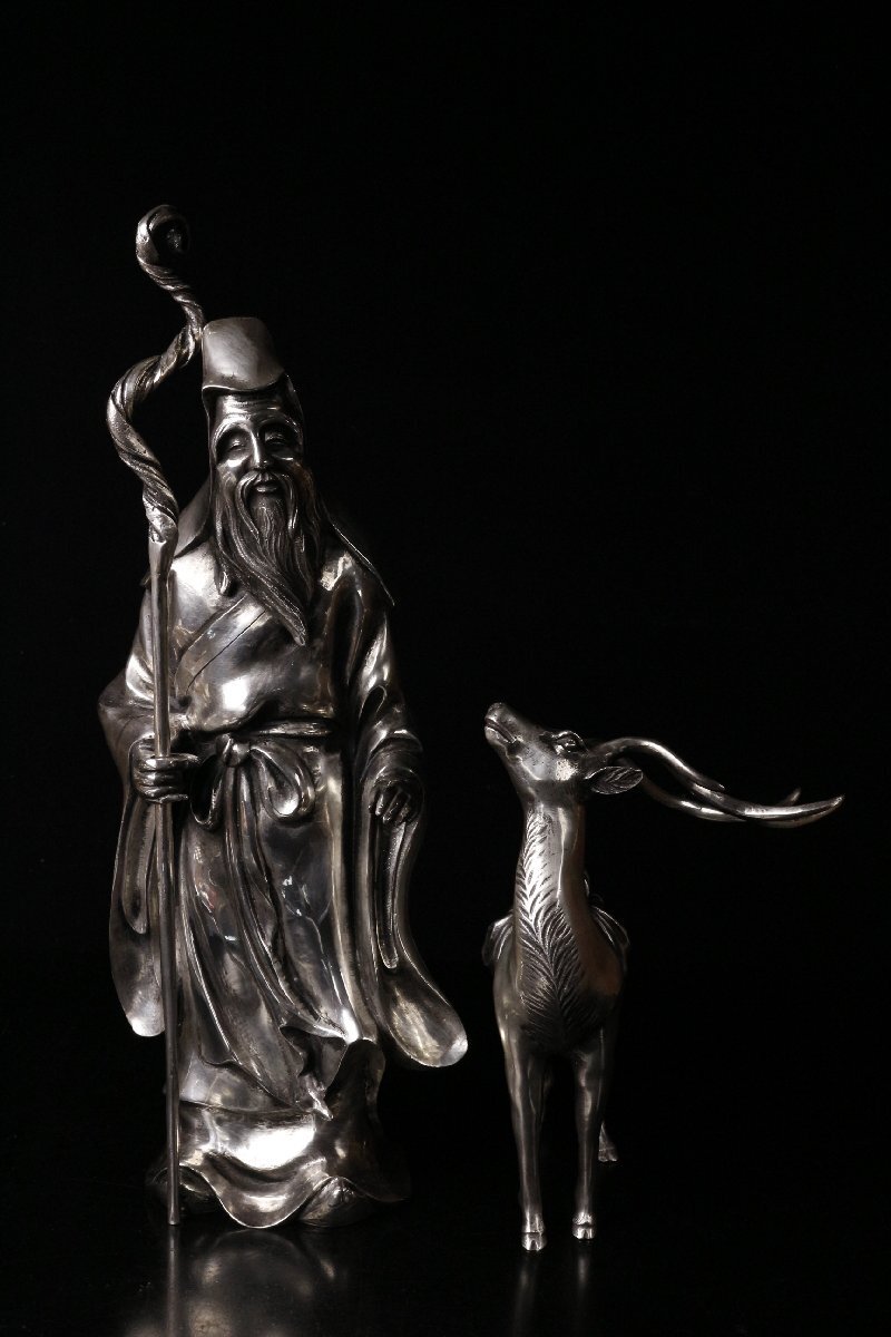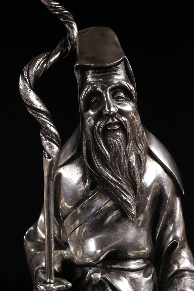 * * * 商品詳細 * * * ここでしか出逢うことのできない唯一の美をご紹介させて頂きます。 細部まで繊細かつ丁寧に仕上げられた鹿寿老像のご紹介です。 柔和な空気感までもが表現されており、メリハリのある鈍い輝きが一層神々しくも感じられます。 ゆったりとした衣服や髭の豊かな表現、指先にまで神経の行き届いた精巧な造形は実に見事です。 眺めているだけで微笑ましく、心が穏やかになるような雰囲気のある素晴らしい逸品です。 この機会に是非お手元にてご堪能下さい。 作家略歴 大島如雲 (おおしま じょうん 1858年 - 1940年) 日本の鋳金家。本名勝次郎。 1858年 江戸に生まれる 1877年 家業を継承 如雲を名乗る 1881年 第2回内国勧業博覧会に 高村光雲と合作を出品 1892年 東京美術学校鋳金科で教鞭をとる 1900年 パリ万国博覧会 金賞受賞 1918年 東京美術学校教授 就任 1940年 死去 ■商品内容/鹿寿老、箱 ■サイズ/寿老人:横18cm×高41cm×奥行14.5㎝ 鹿:横18.5㎝×高24.5㎝×奥行19.5㎝ 総重量6.318kg 箱:横30.5cm×高50cm×奥行23.5㎝ ■状態/スレ、キズ、変色、箱にスレ、キズ、欠け、腐食がございます。 ※写真にてご確認、ご了承の上ご入札下さい。 銀刻印がある為タイトルに記載してありますが銀を保証するものではありません。 ご理解の上ご入札ください。 ![]() Yahoo!かんたん決済 * * * 発送詳細 * * * 入金確認後3営業日以内に発送致します。 ※直接引き取りも可能です。 60~160サイズにつきましては 佐川急便、ゆうパックのどちらかで発送いたします。 ゆうパック発送の場合、弊社の発送日から追跡サービスに問合せ番号が反映されるまで 約1日ほどお時間がかかりますのでご了承下さい。 * * * 注意事項 * * * 運送中の破損があった場合は速やかに当社までご連絡下さい。 保険を利用するのに受取連絡後に運送会社による現場での破損状況確認が必要となります。 勝手に返送されますと保険の適用外となりますのでご注意ください。 * * * * * * お問い合わせ:082-236-8669 |