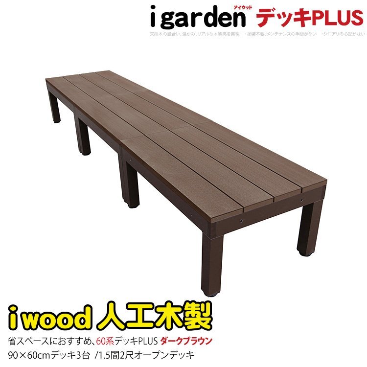 igarden アイウッドデッキ PLUS 60系 オープンタイプ 3点セット ダークブラウン 樹脂製 アルミ