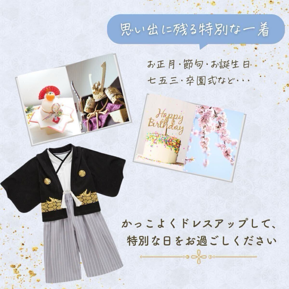 子供 卒園 袴 120 男の子 黒 セット キッズ 5歳 撮影 前撮り 七五三 新品