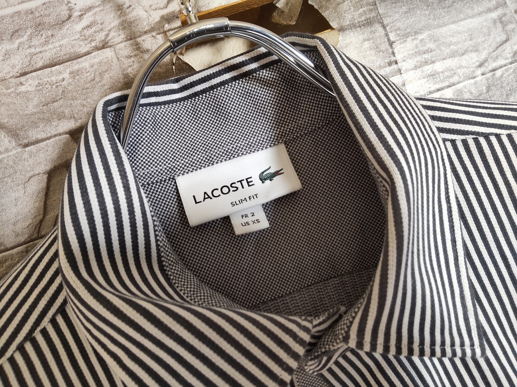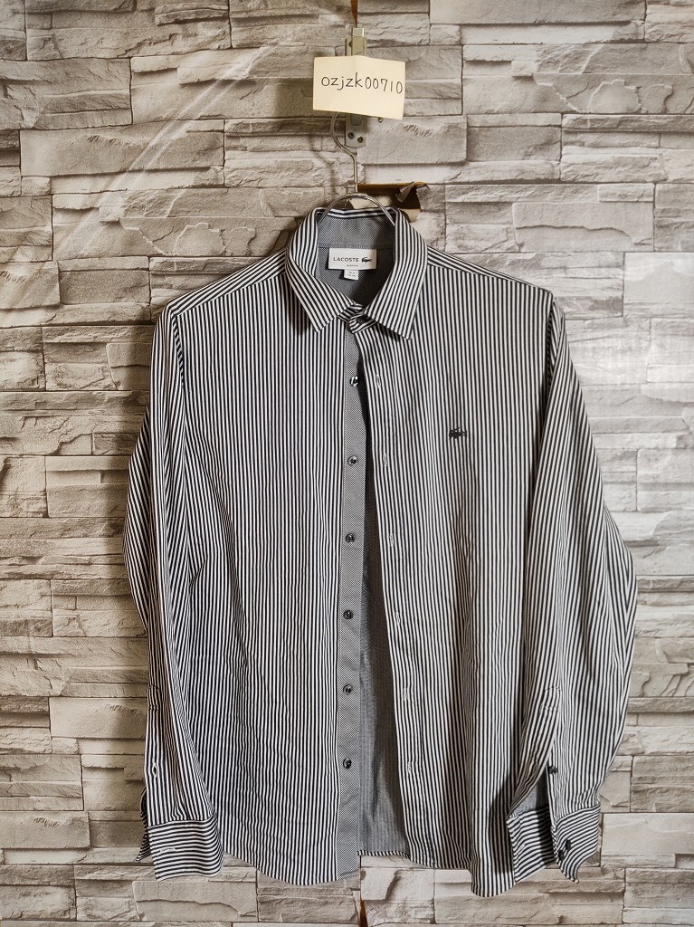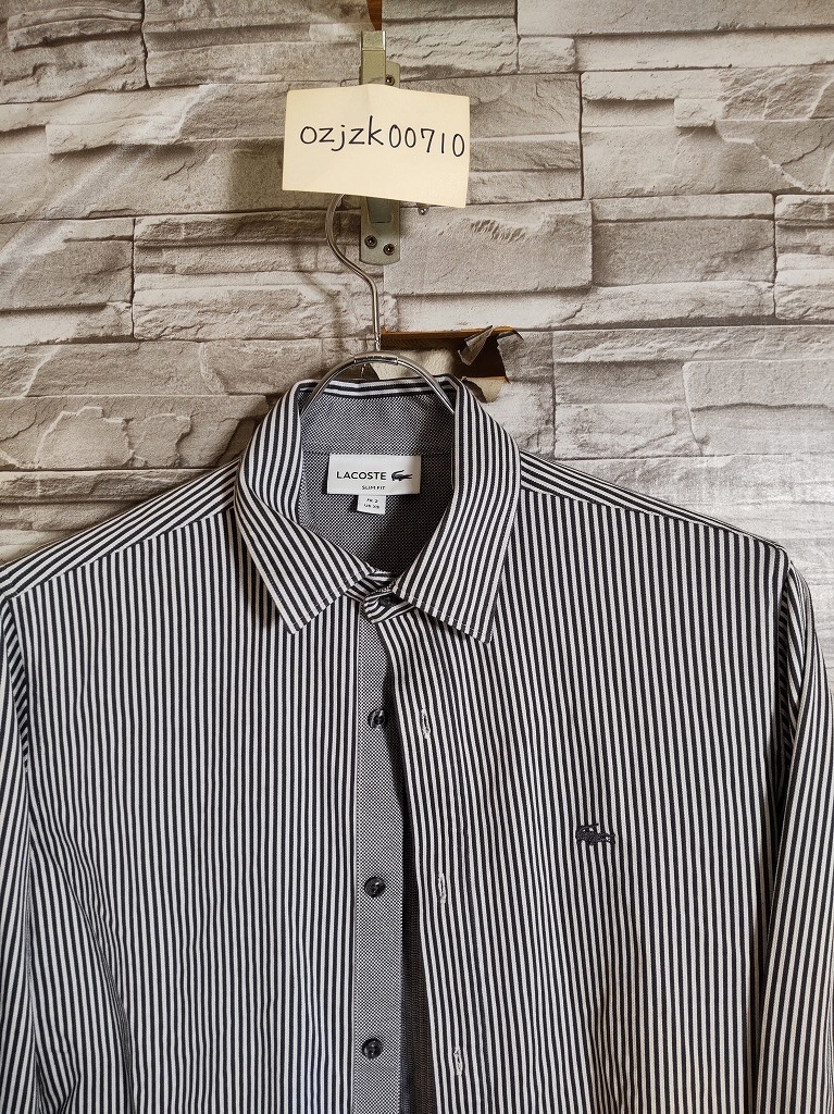 men's J524 LACOSTE ラコステ ストライプ 長袖 シャツ 2 ホワイト系 ネコポス発送可
