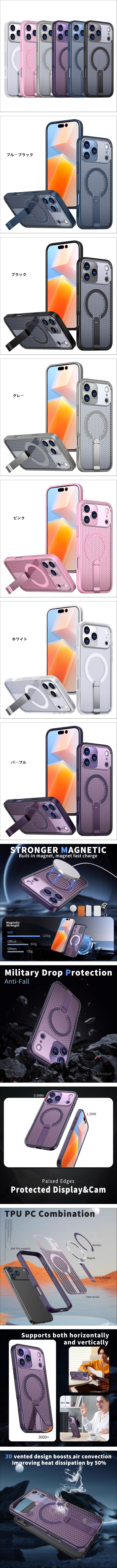 iPhone17 (6.3インチ) 用 ケース 凡星スタンド MagSafe対応 磁気吸着 創意 防 放熱 保護カバー | |||