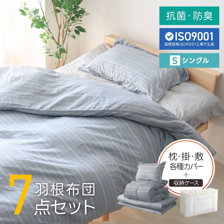 | ISO9001認可工場で生産された安心の品質! 届いてすぐ使える寝具6点+収納ケースの7点セットです。 掛け布団は高級布団などにも使われるフェザーを100%使用! 冬場は暖かく、夏場は蒸し暑くなりにくいため、オールシーズン快適に過ごせます。 敷き布団はフローリングや畳の上に直接敷いても痛くないよう、 芯のある固綿を、ふんわり柔らかな中空ポリエステル綿でサンドイッチした三層式構造を採用! 底付き感を感じないボリュームで、快適な寝心地とふんわり優しく包みこまれる気持ちよさを実現! また、抗菌防臭加工が施されており、いつでも清潔に使えます。 \すぐ使えるから、こんな方におススメ♪/ ・一人暮らしや新生活を始める方 ・新生活を始める方 ・来客者用の布団一式を考える方 ・布団、寝具の買い替えを考える方 ・社員寮など業務用として考える方 【商品内容】 掛け布団、敷き布団、まくら、掛け布団カバー、敷き布団カバー、まくらカバー、収納ケース 【商品詳細】 カラー:ストライプグレー サイズ:シングル(詳細は画像参照) 素材:ポリエステル、フェザー |