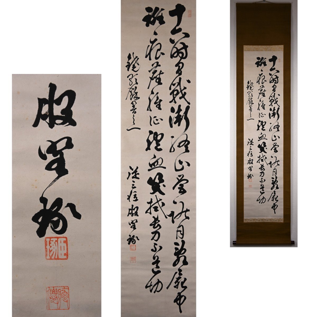 【サイズ】 本紙:136.4 × 31.7cm 総丈:195.7 × 49.7cm 【作家】 股野琢(またの たく、天保9年〈1838年〉~大正10年〈1921年〉)は、幕末から明治・大正期にかけて活躍した儒者・官僚。 号は藍田、字は子玉。教部省・太政官を経て宮内省に仕え、帝室博物館総長や宮中顧問官を歴任。著書に『邀月楼存稿』などがある。 【状態】 本紙シミ有。箱が付きます。 ※骨董品ですので、経年による劣化損傷等に神経質な方の入札はご遠慮願います。 ※写真で状態をよくご確認の上ご入札ください。 |