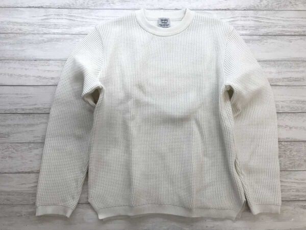 SHIPS シップス amossa メンズ セレショ系 トレンド古着 ワッフル ニット セーター ポリエステル100% 日本製 サンプル品 軽量 白 です。