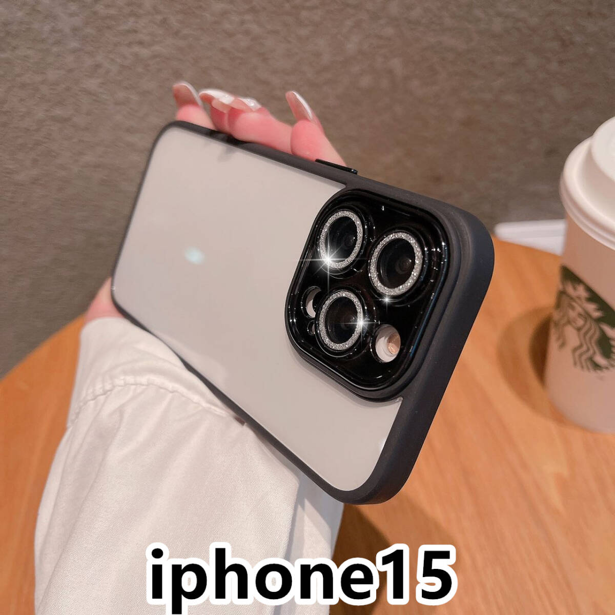 iphone15ケース カーバー レンズ保護付き 透明 お洒落 韓国 軽量 ケース 耐衝撃 高品質 ブラック