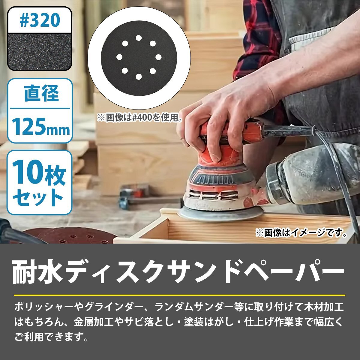 耐水 320番 10枚 125mm サンドペーパー 丸型 8穴 サンダー マジックパッド ディスク ペーパー 紙やすり #320 細目