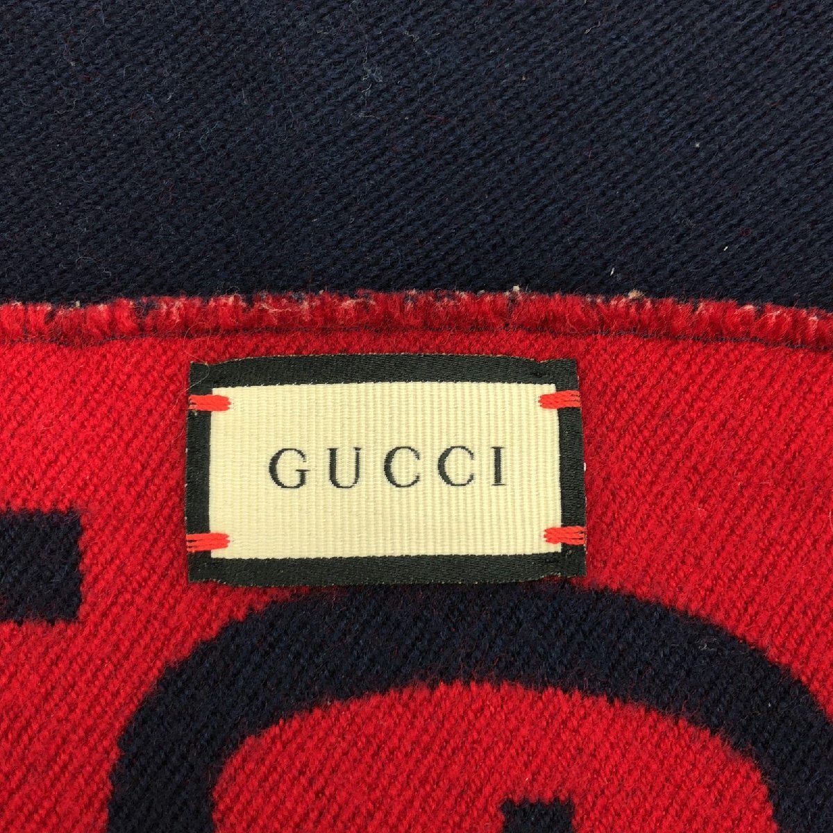グッチ GG柄 ネイビーマフラー ブランドオフ GUCCI ウール マフラー 中古 メンズ レディース