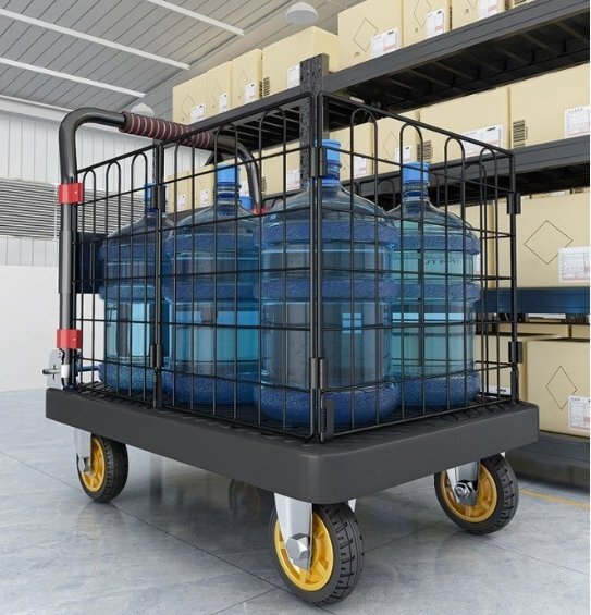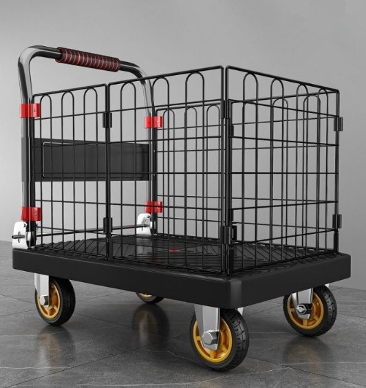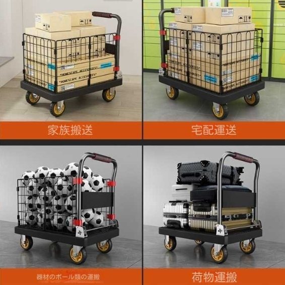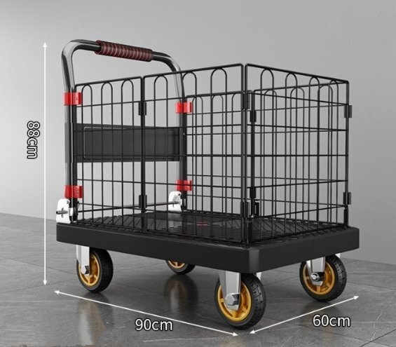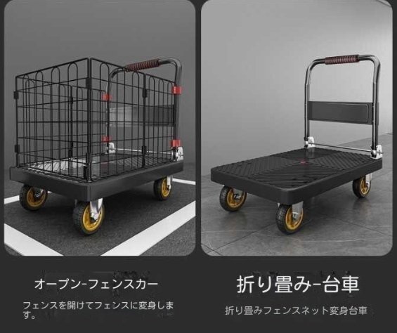 90*60cmカゴ台車 大容量 メッシュ台車 カゴ付き台車 台車 折りたたみ式 カート台車 網籠車 積載運搬車 耐荷重450kg