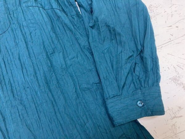 CANDA オールド レトロ 長袖オープンカラーシャツ ブラウス レディース ポリエステル100% シワ加工 44 ターコイズ です。
