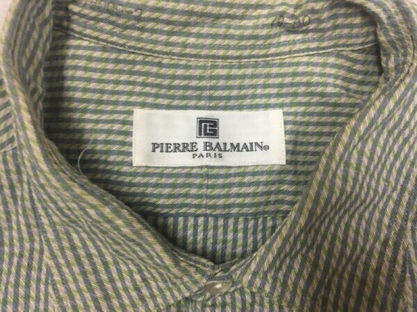 ピエールバルマン PIERRE BALMAIN オールド レトロ 古着 チェック長袖ドレスシャツ メンズ 40 緑 です。